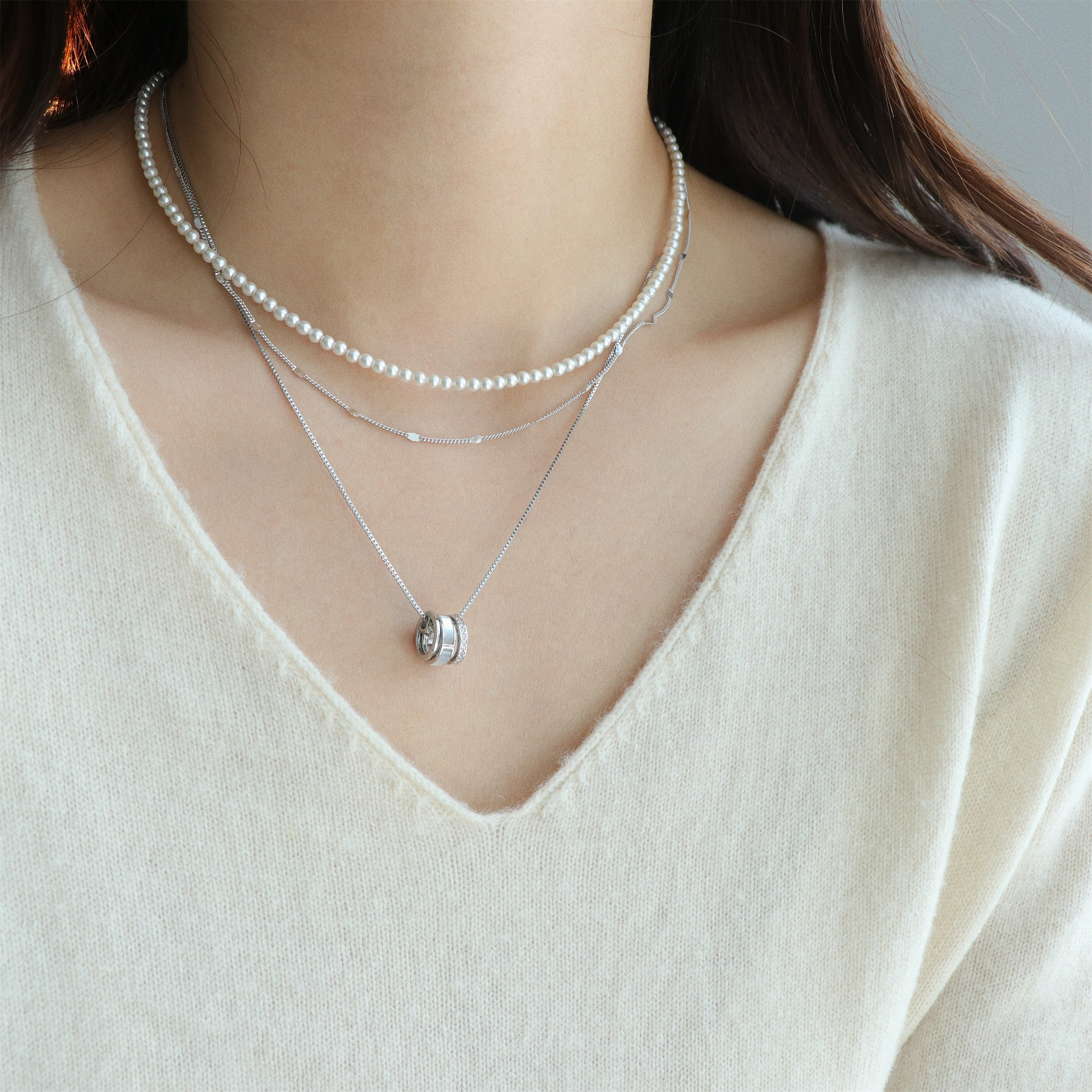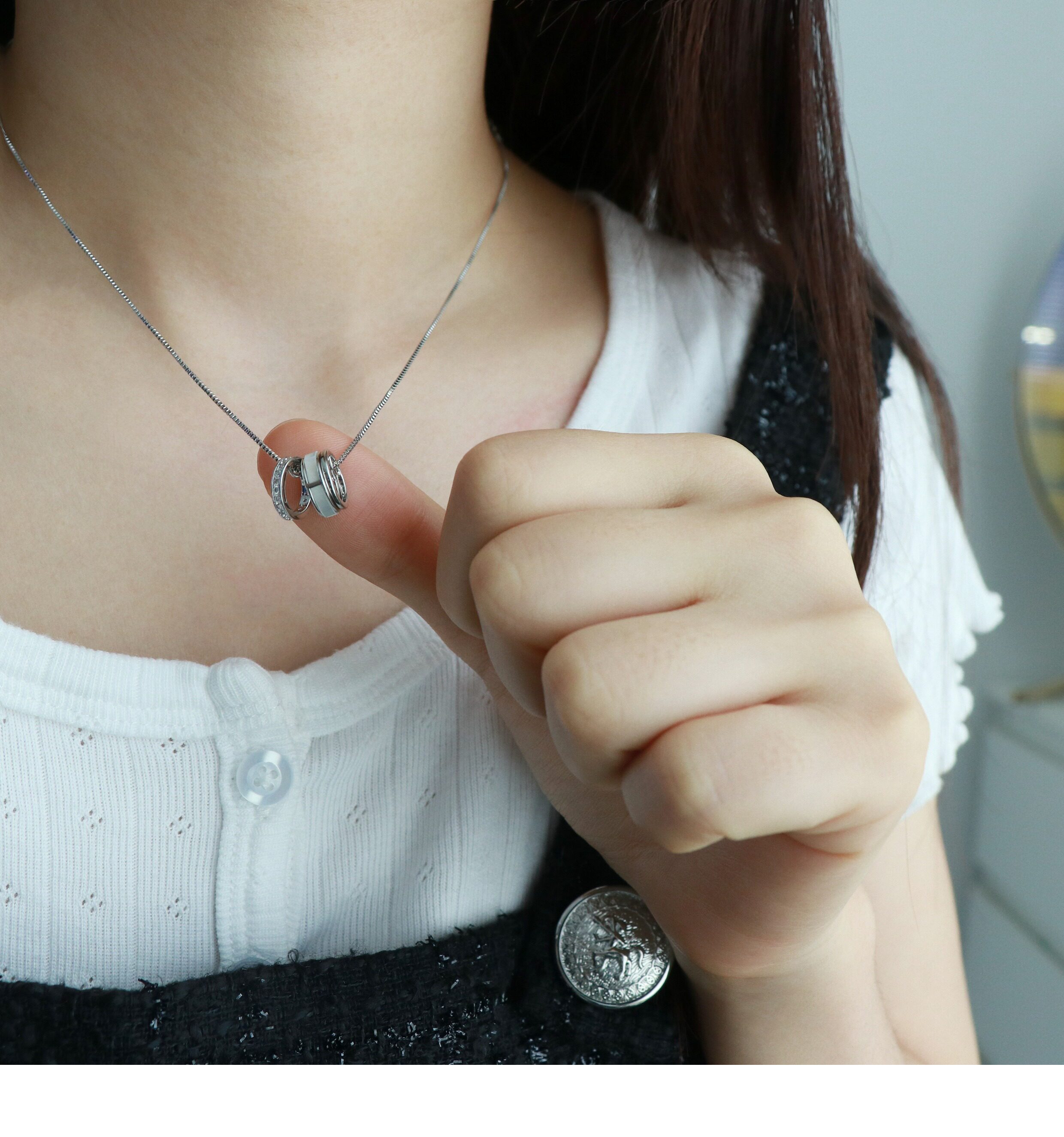 因缺斯汀環環相連鎖骨鍊經典圓圈小蠻腰項鍊氣質百搭通勤項鍊
