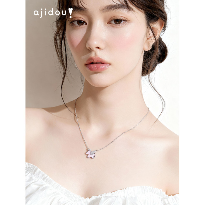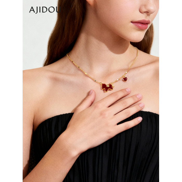 AJIDOU阿吉豆項鍊女款生肖馬上有錢吊墜新年紅色毛衣鏈輕奢鎖骨鍊