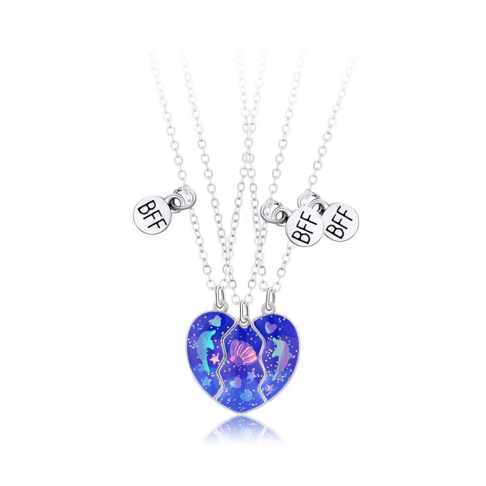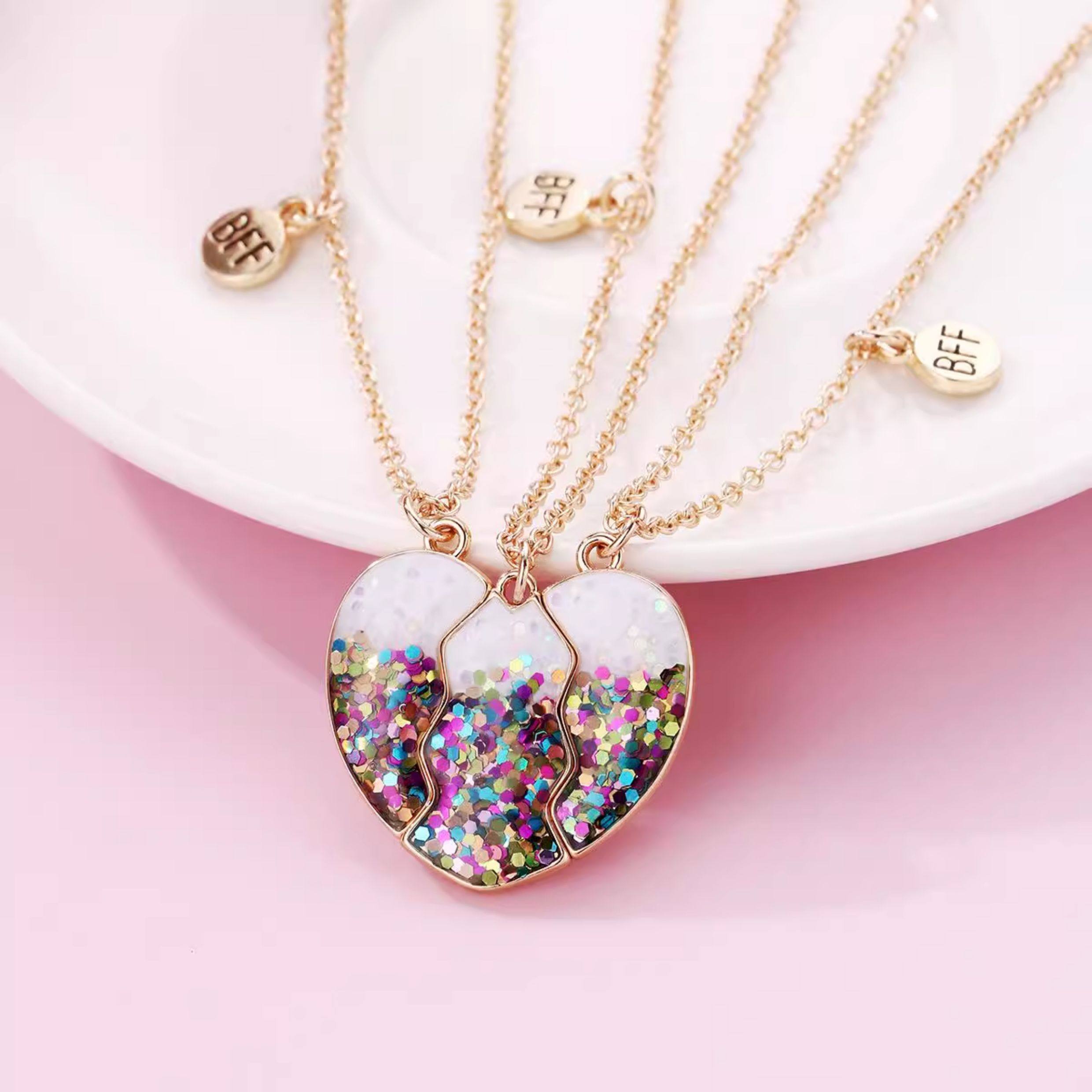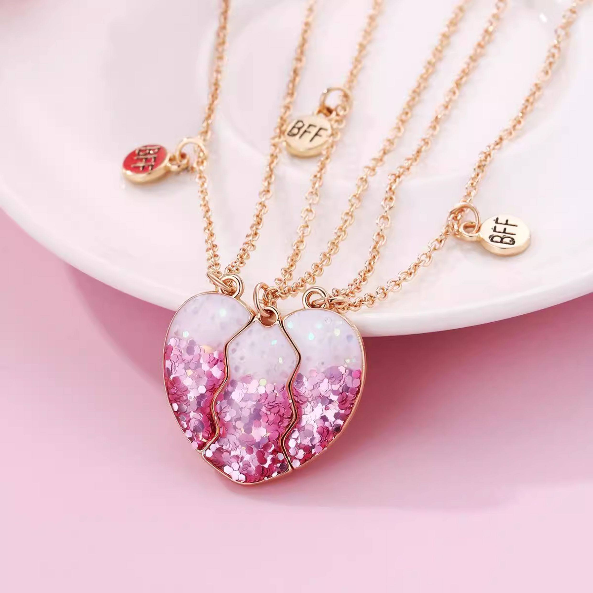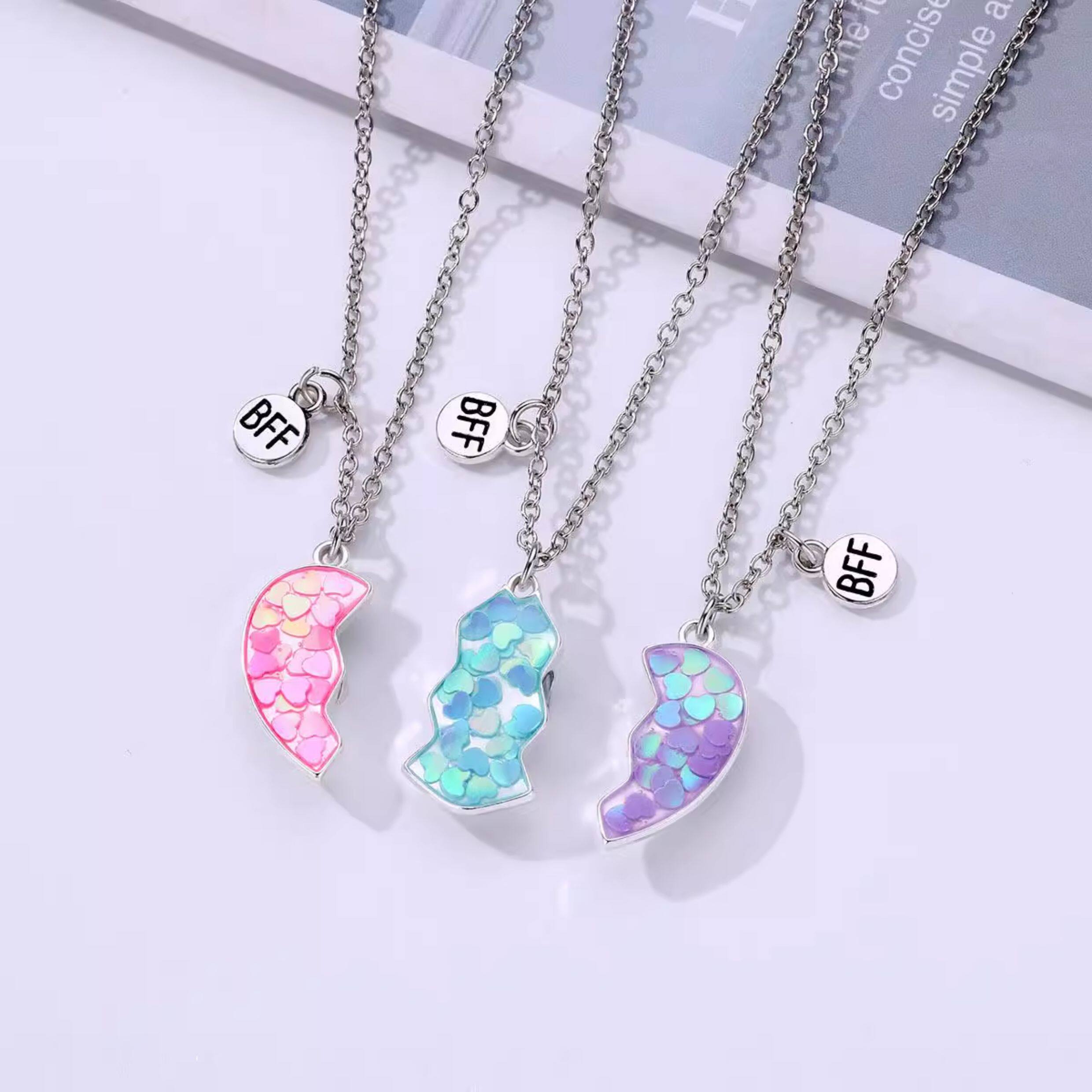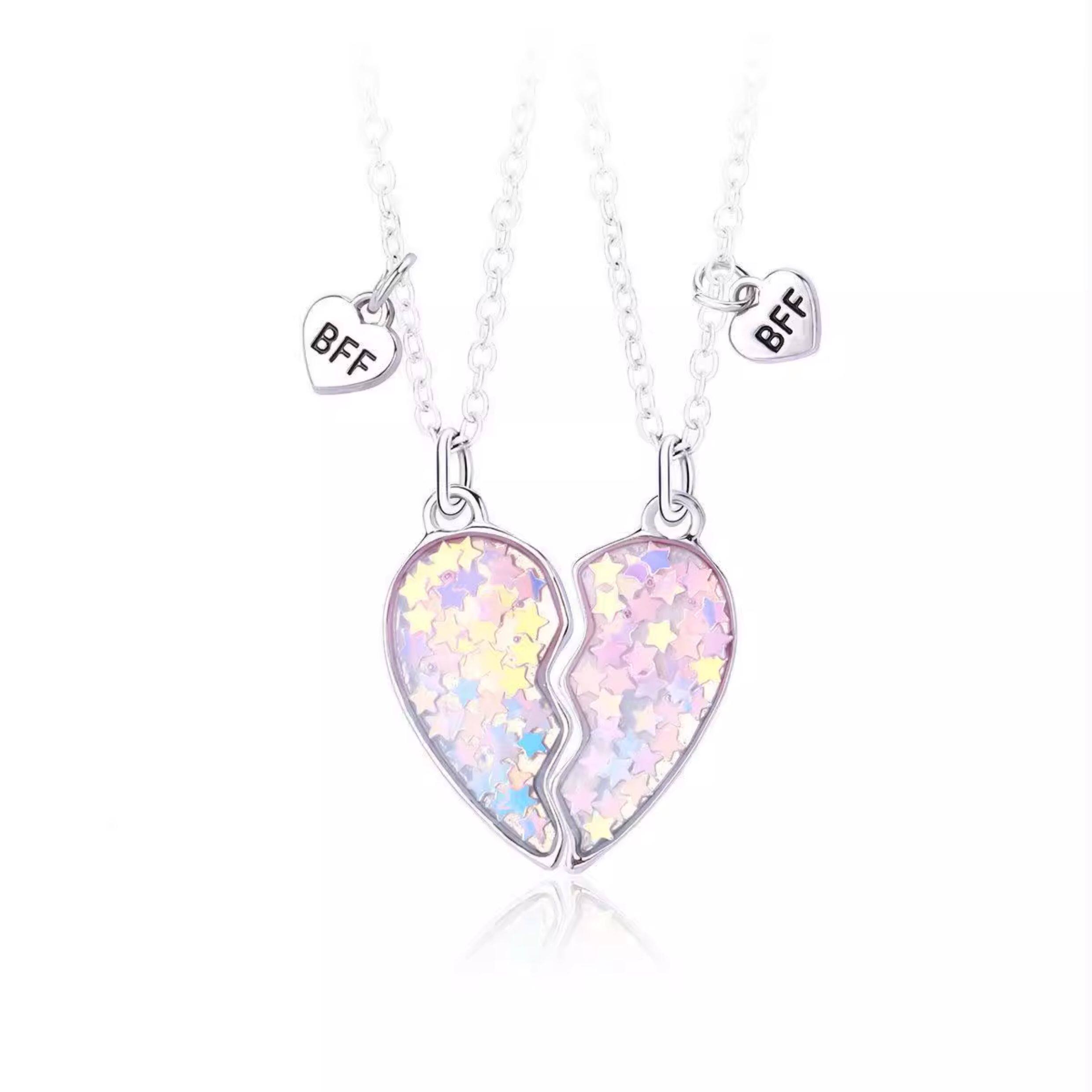 好閨蜜磁吸項鍊兒童學生黨好朋友一對拼接愛心友誼二人三人四人款
