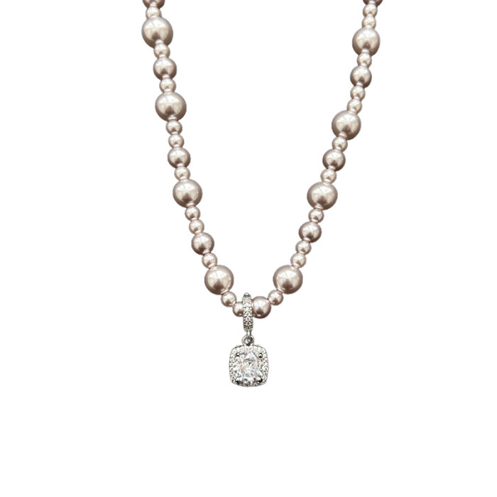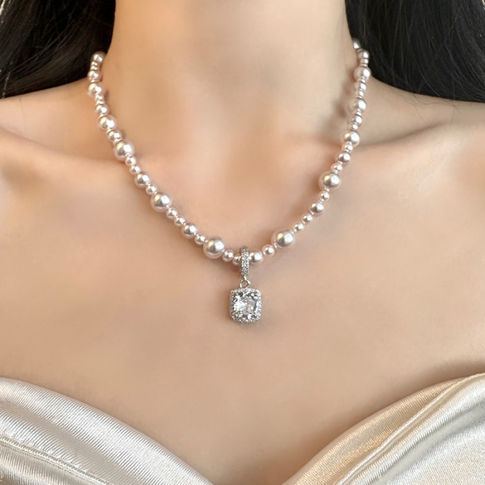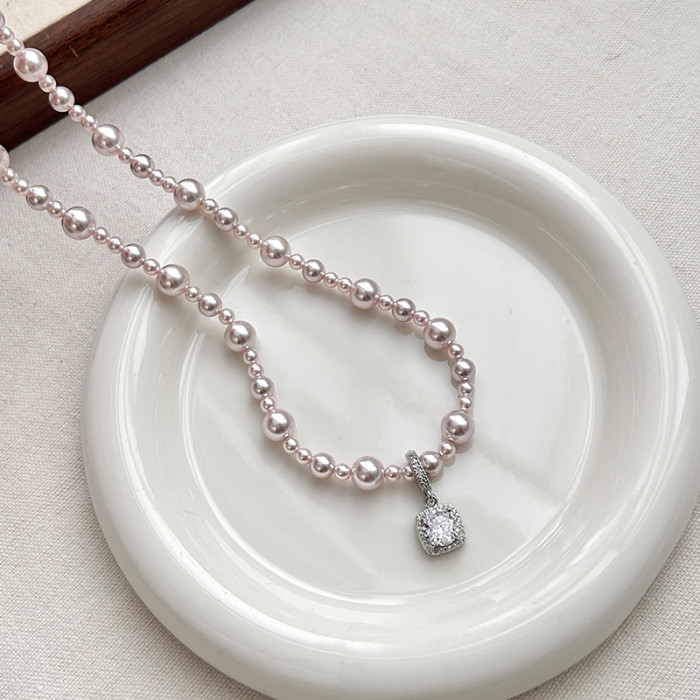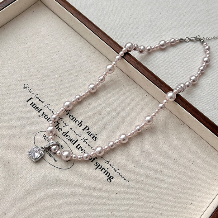 曼塔玫瑰珍珠方糖鋯石項鍊女高級感輕奢小衆頸鏈2025新款鎖骨鍊