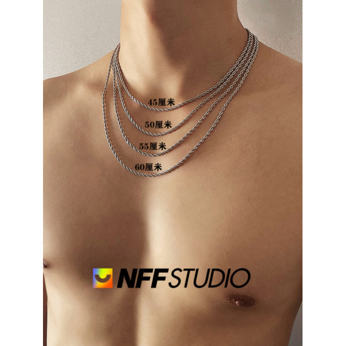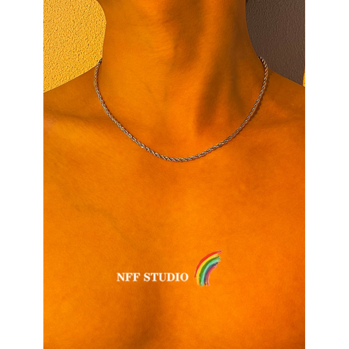 NFF嘻哈輕奢小衆鈦鋼項鍊男ins冷淡風極簡歐美街頭鎖骨鍊潮麻花鏈