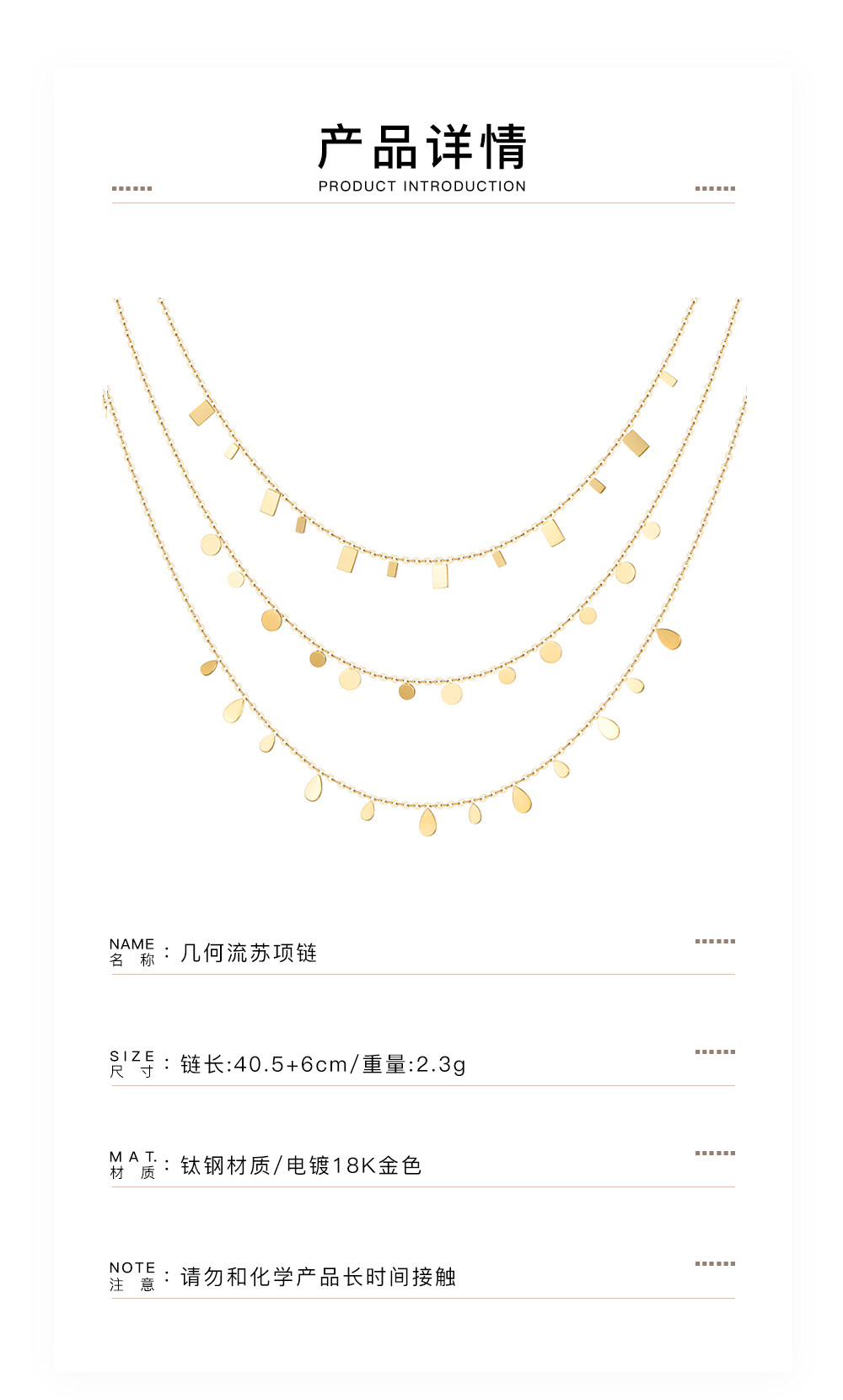 LARAINE YIN法式簡約氣質百搭超閃水滴方片項鍊曡戴流蘇鎖骨鍊ins