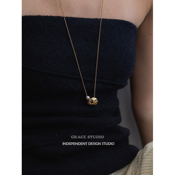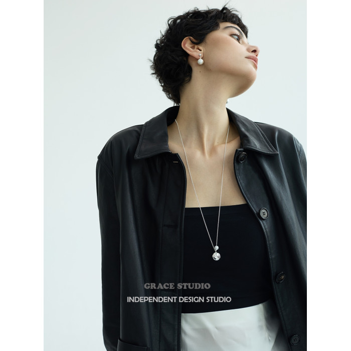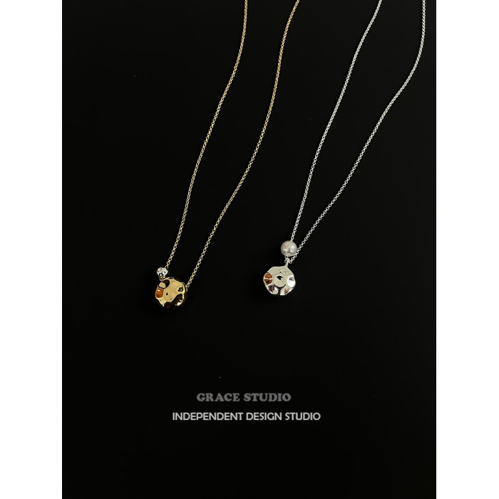 G/S 小衆設計金銀撞色珍珠吊墜長款項鍊高級感簡約休閒曡戴毛衣鏈