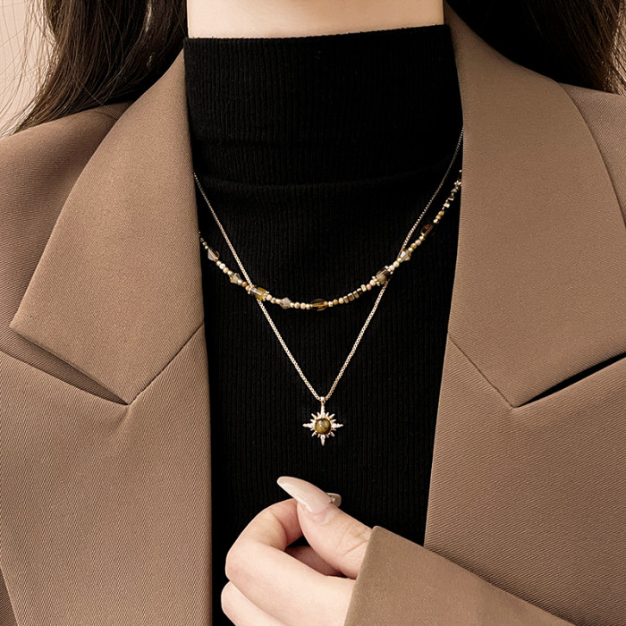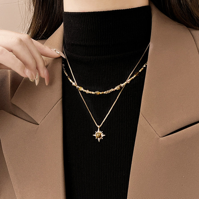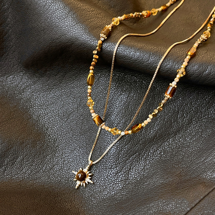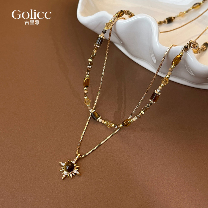 金色虎眼石雙層曡戴項鍊女2026新款毛衣鏈高級感輕奢小衆精緻配飾