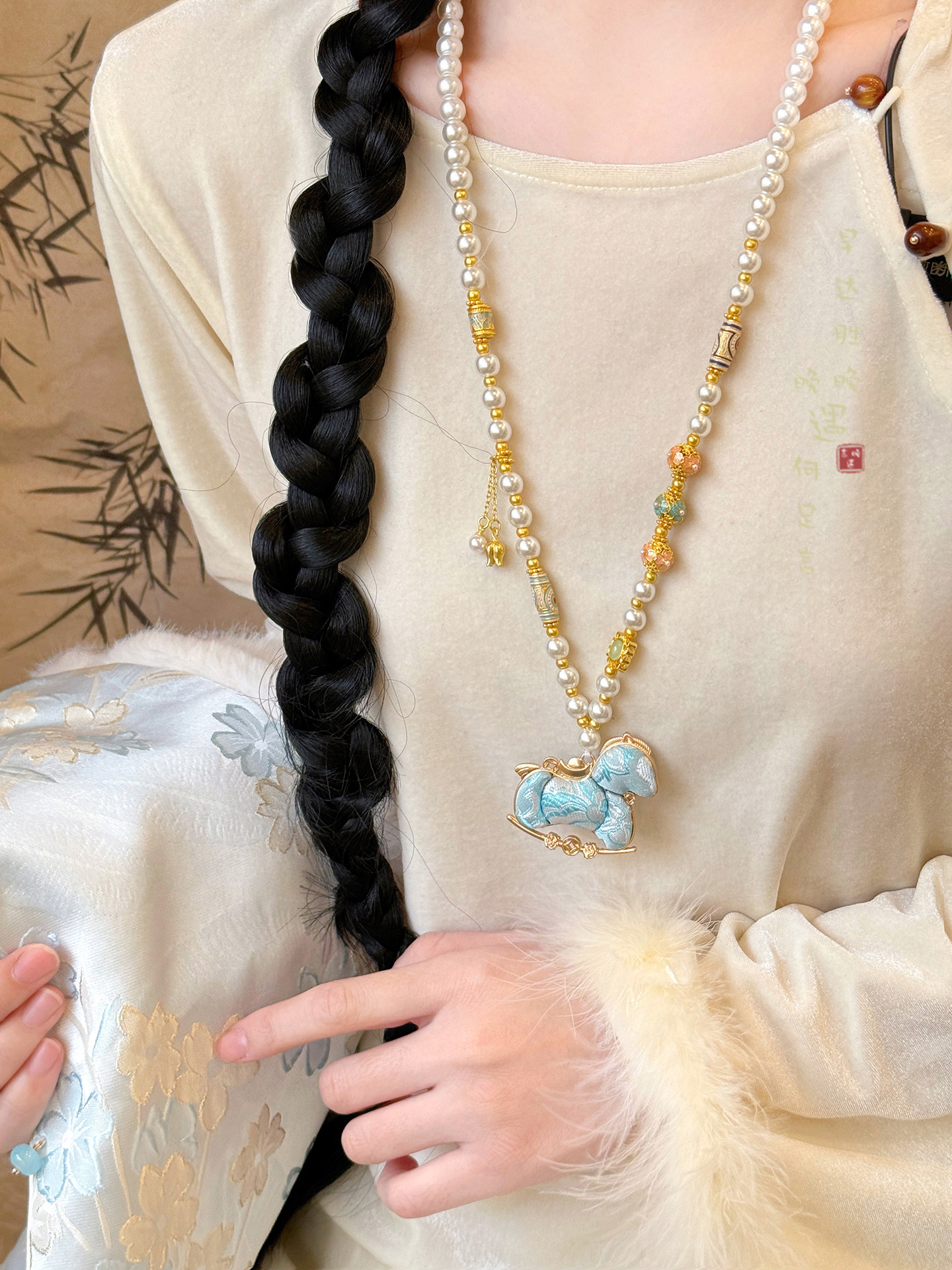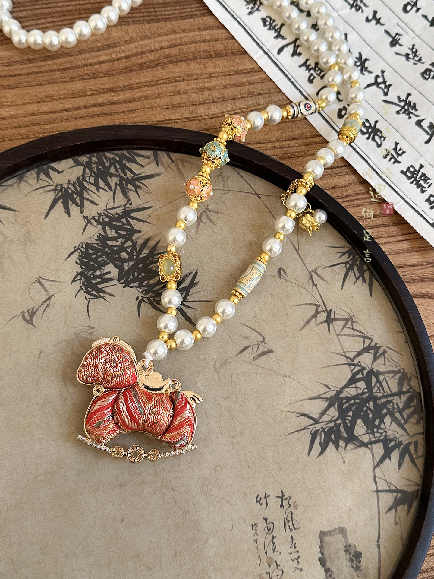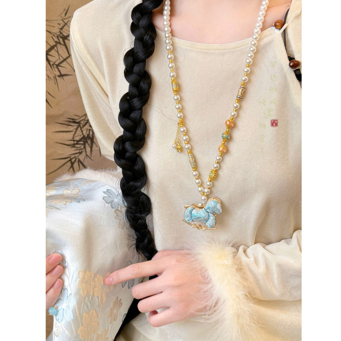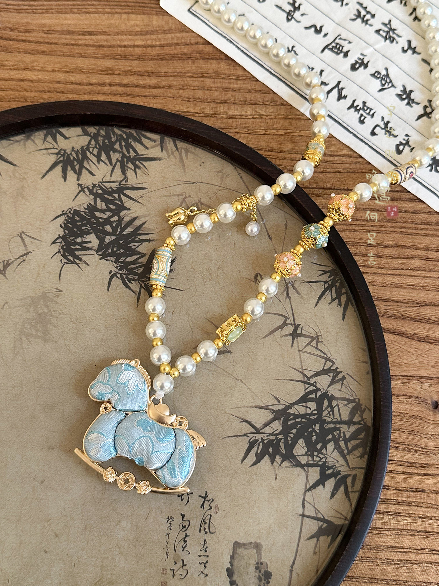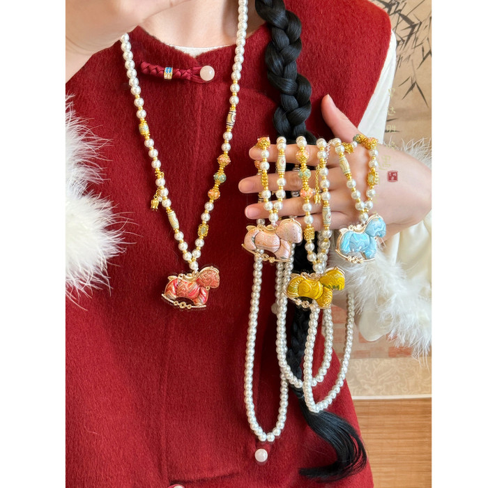 「福你上馬」國風宋錦小馬串珠項鍊女新中式本命年毛衣鏈馬年配飾