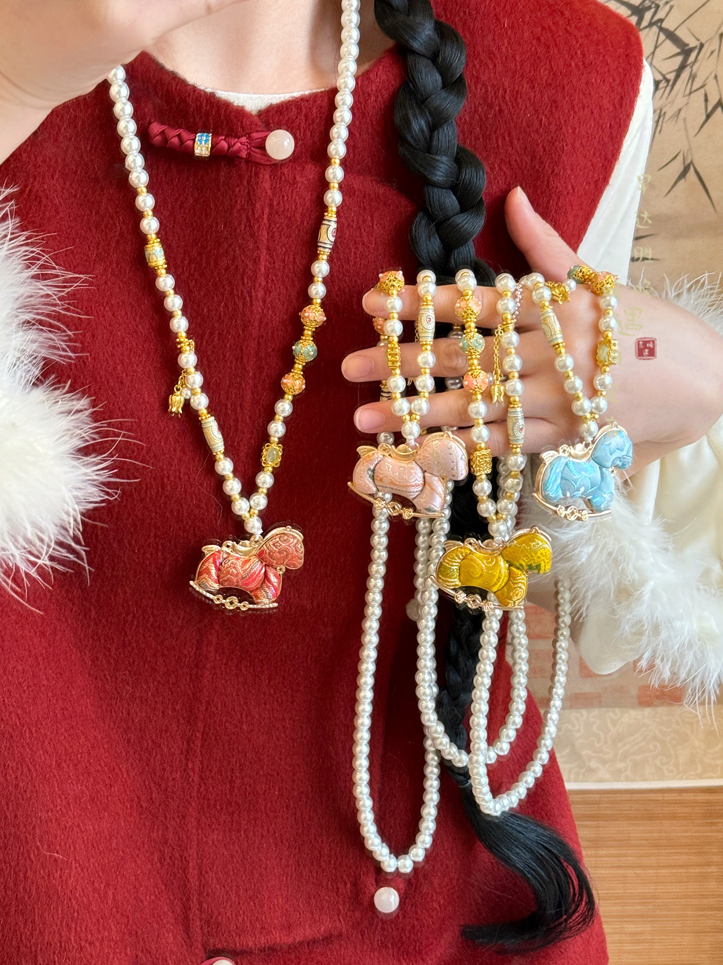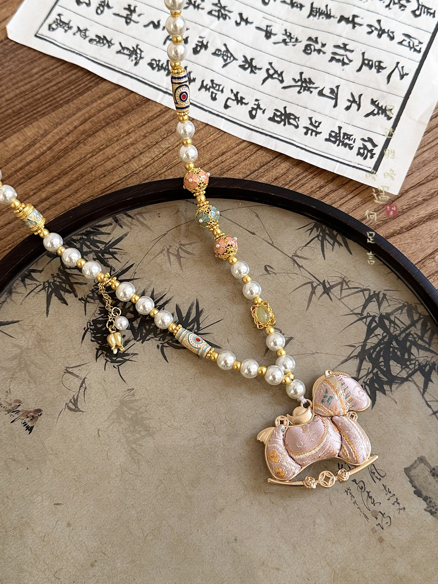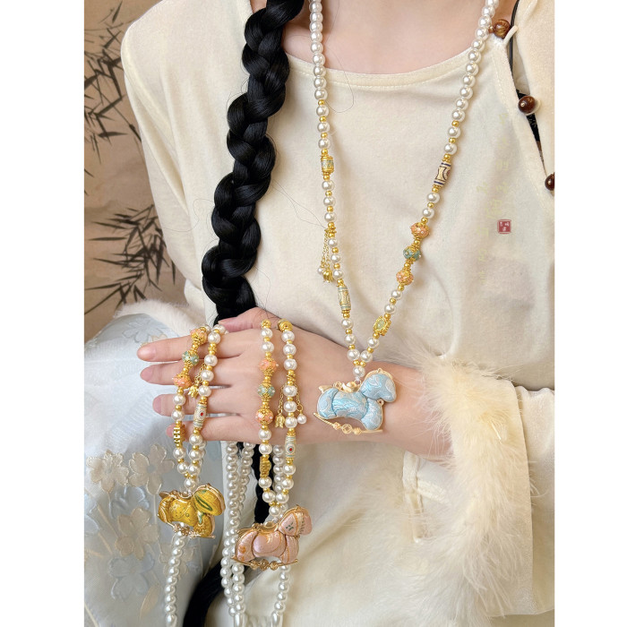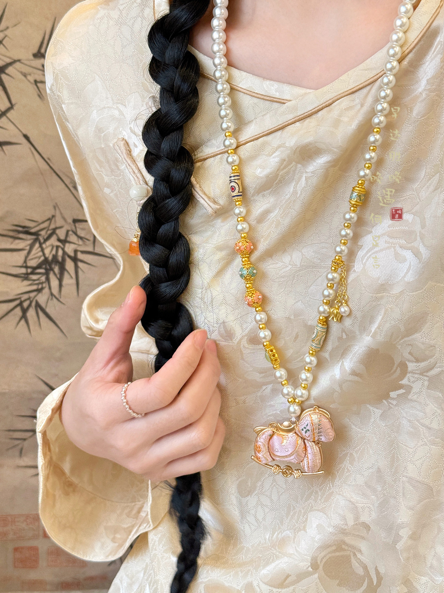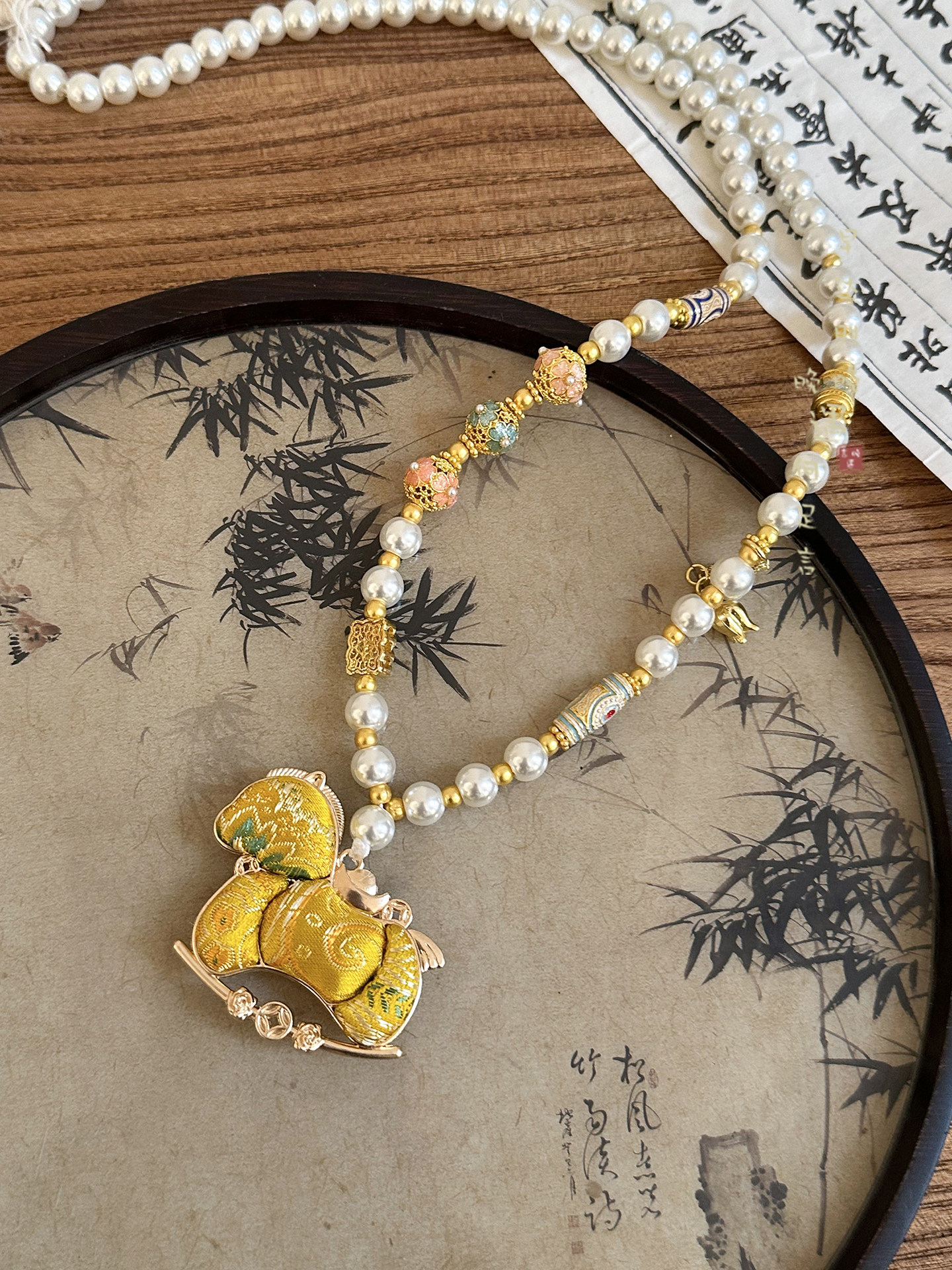 「福你上馬」國風宋錦小馬串珠項鍊女新中式本命年毛衣鏈馬年配飾