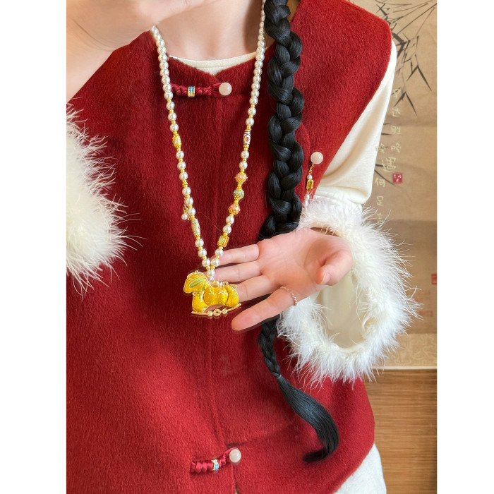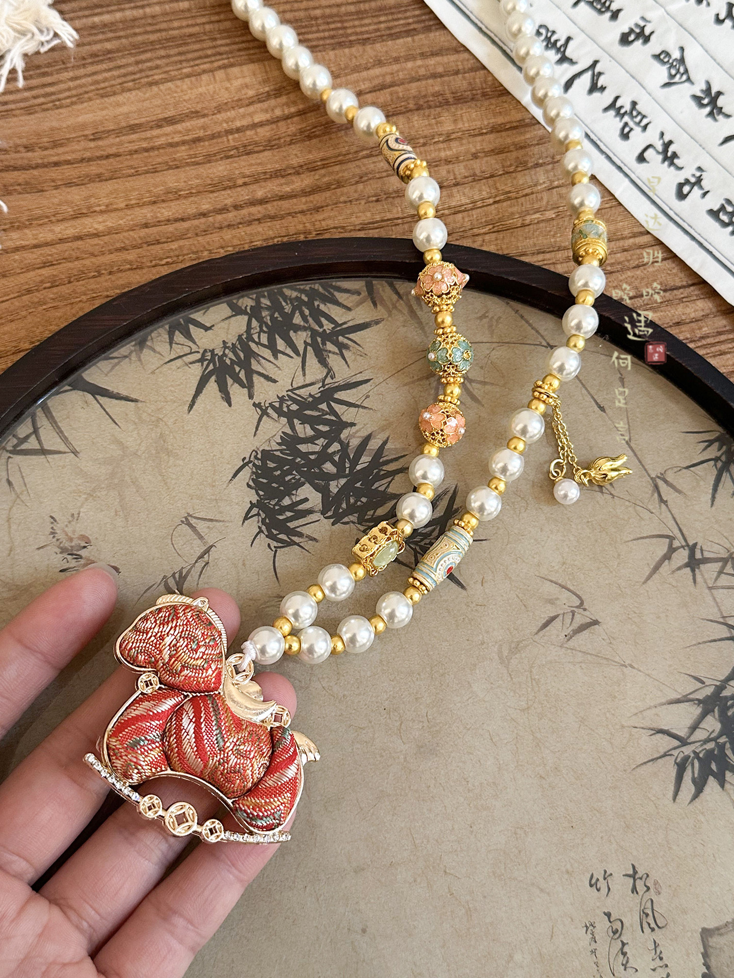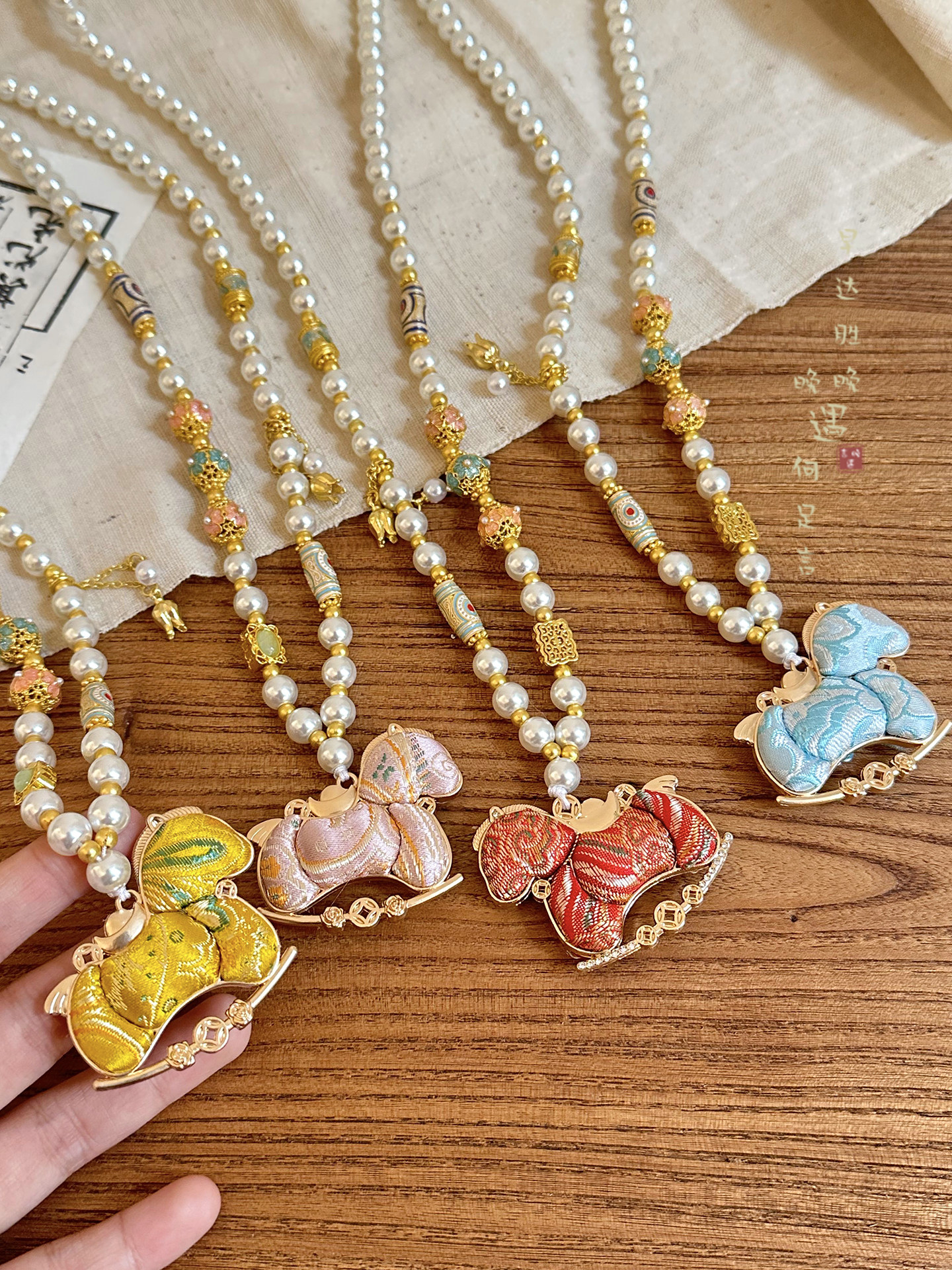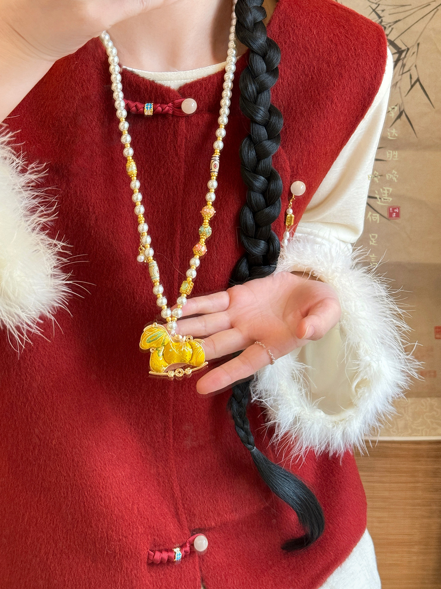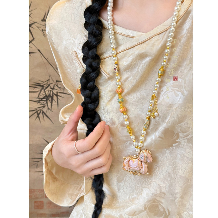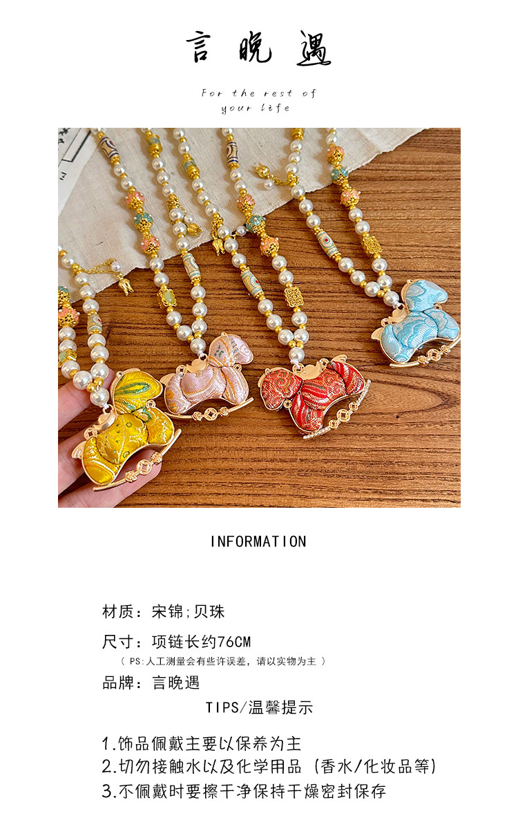 「福你上馬」國風宋錦小馬串珠項鍊女新中式本命年毛衣鏈馬年配飾
