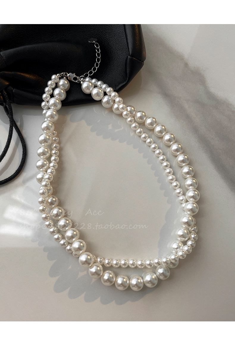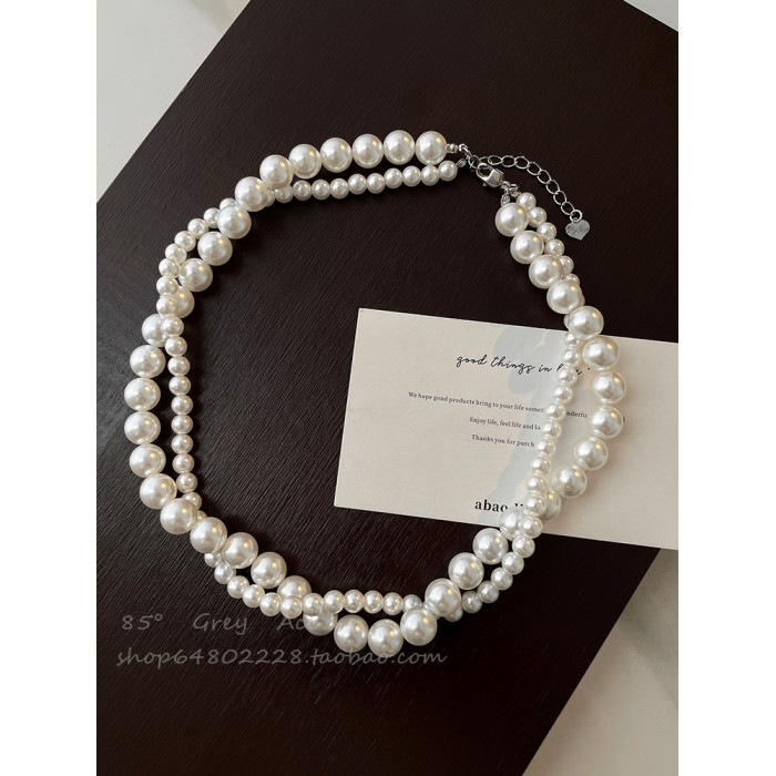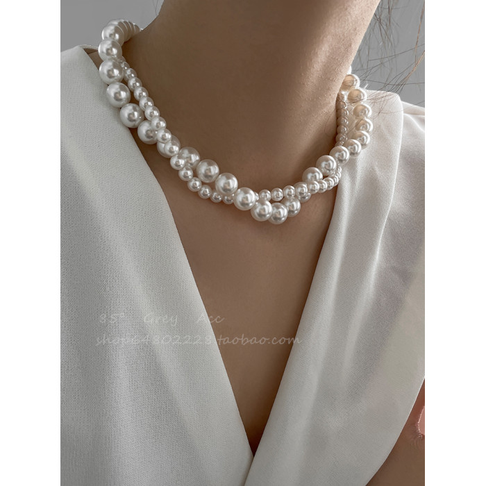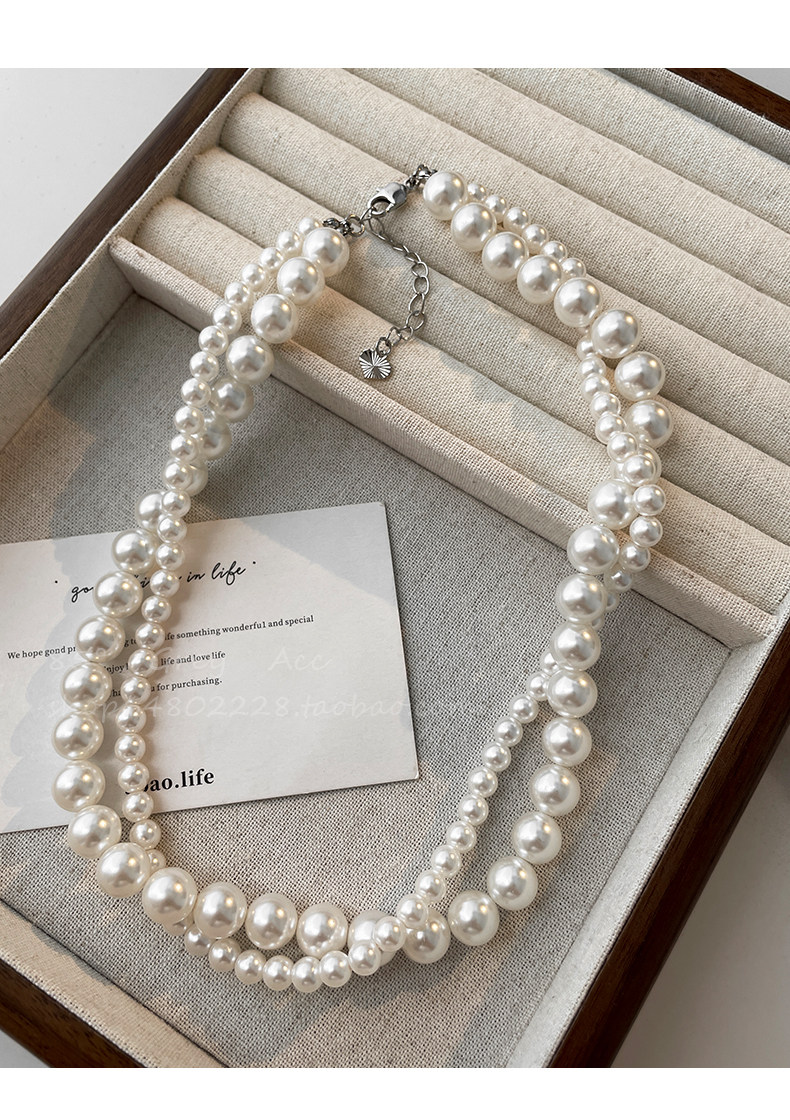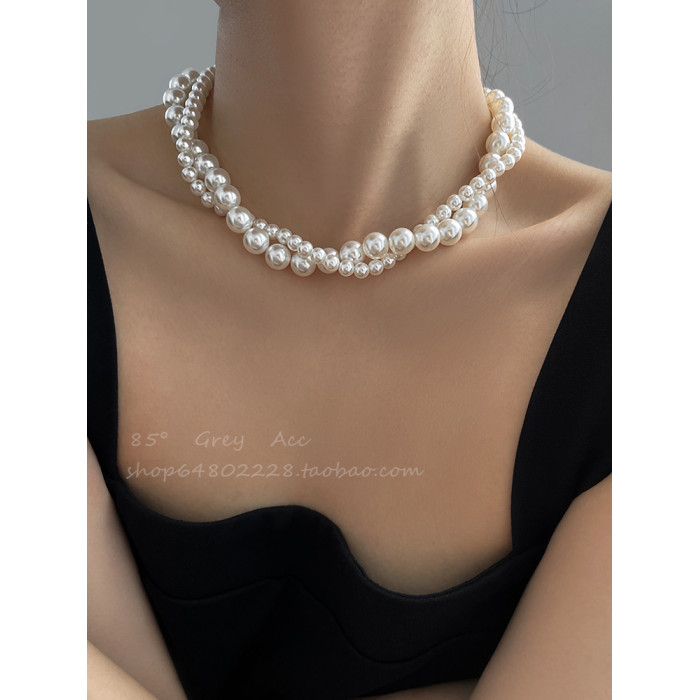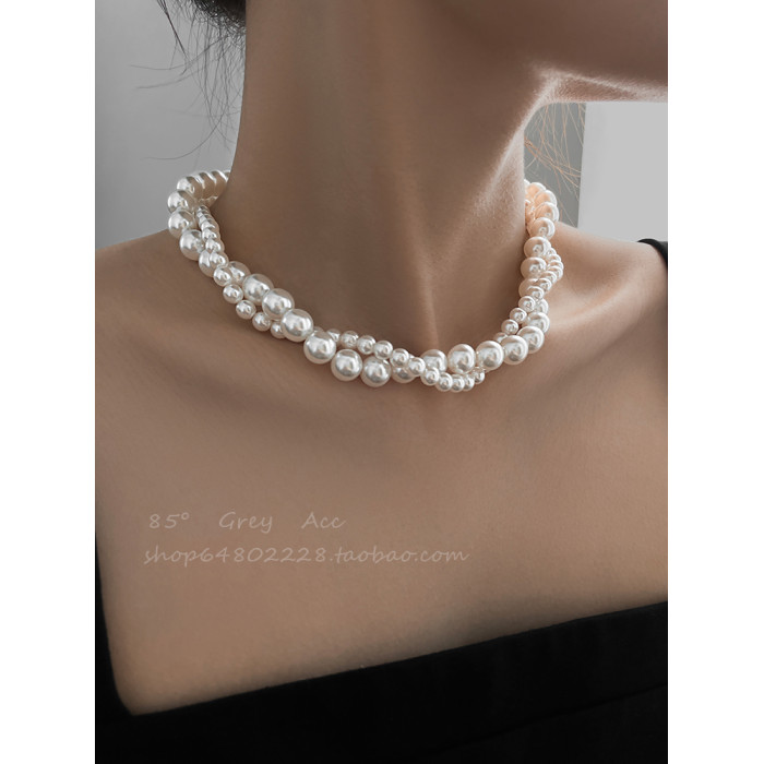施家雙層大小珍珠纏繞項鍊女小衆設計輕奢高級感鎖骨鍊氣質脖頸鏈