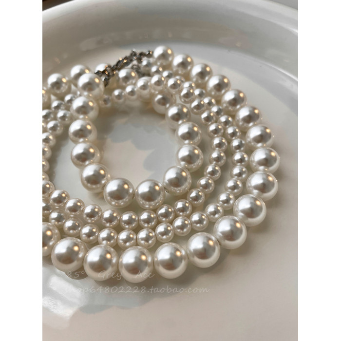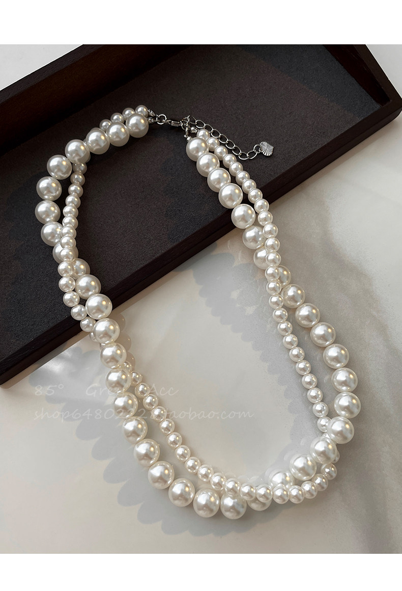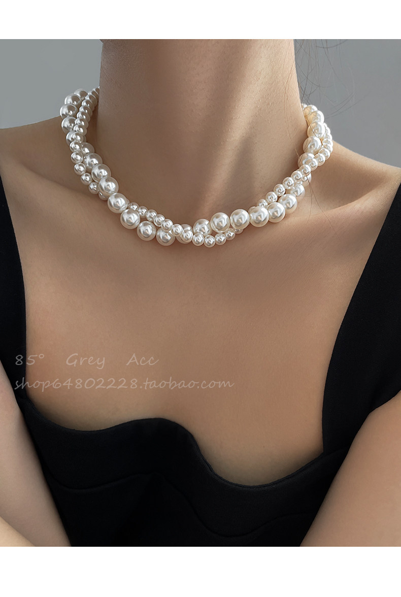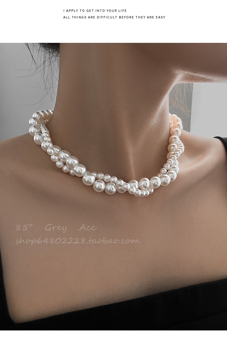 施家雙層大小珍珠纏繞項鍊女小衆設計輕奢高級感鎖骨鍊氣質脖頸鏈