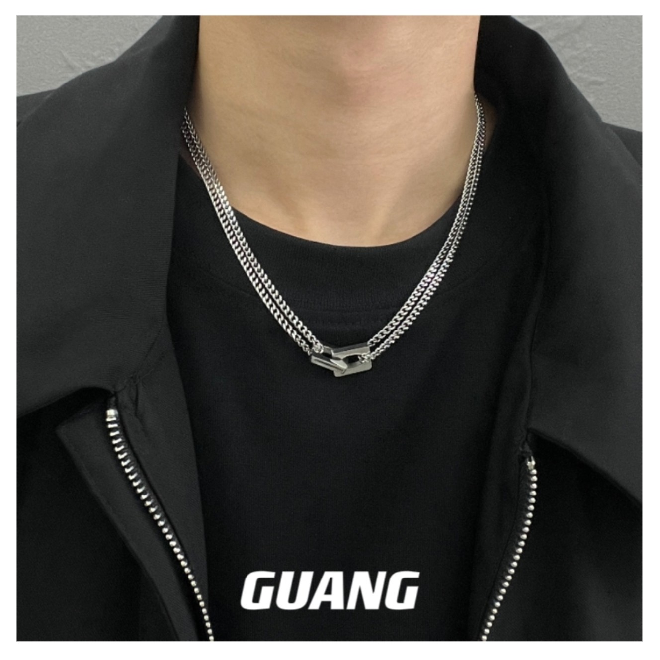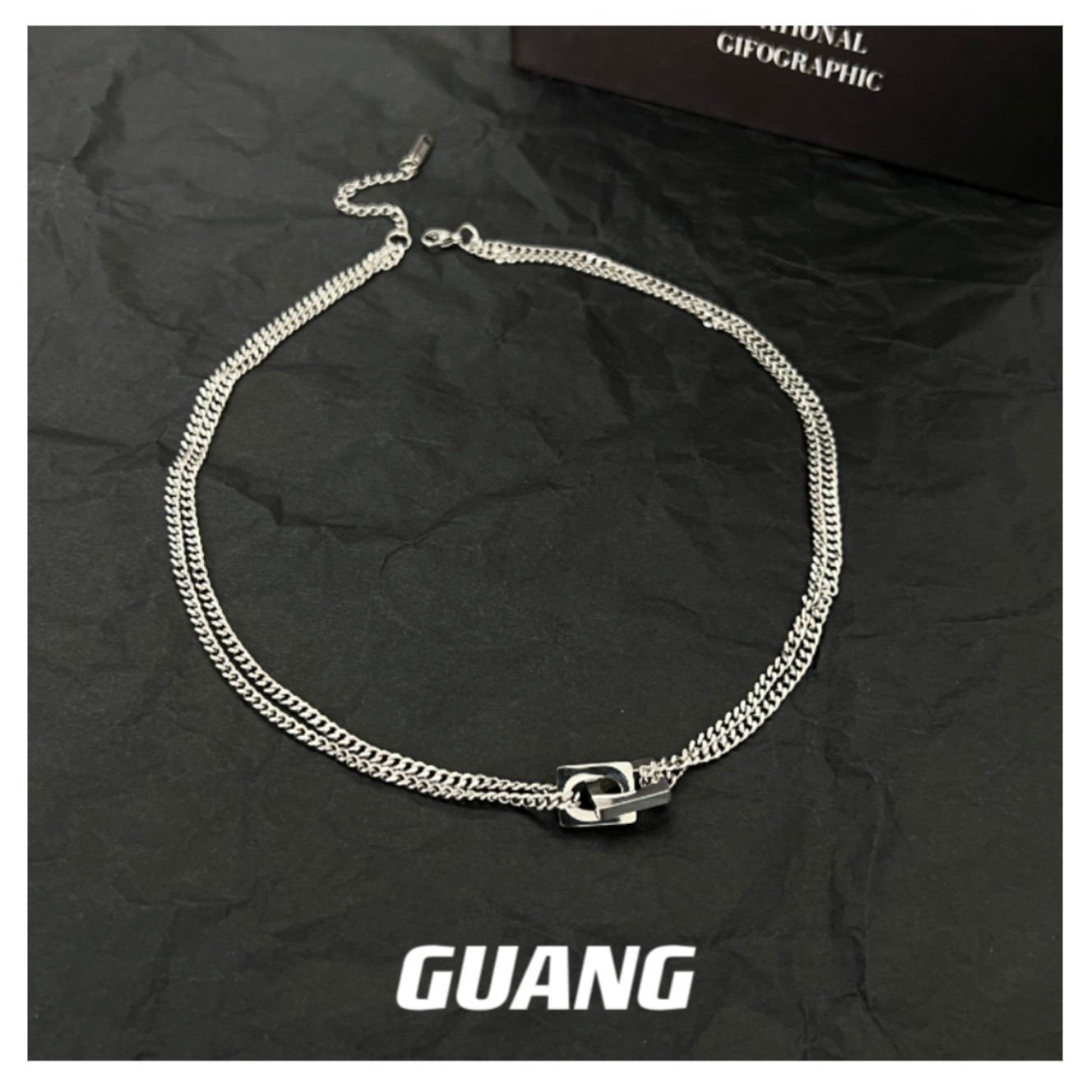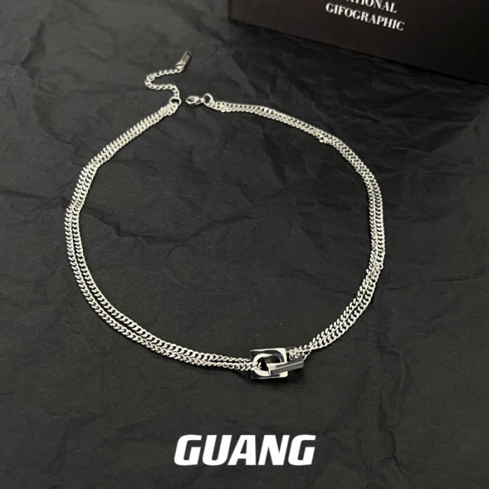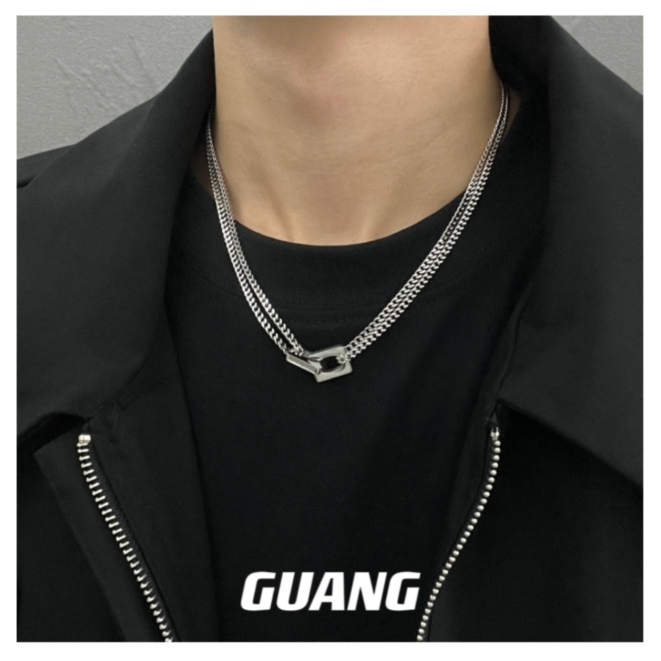 GUANG【檀健次同款】雙環雙層項鍊男女潮流高級感鈦鋼鎖骨鍊配飾
