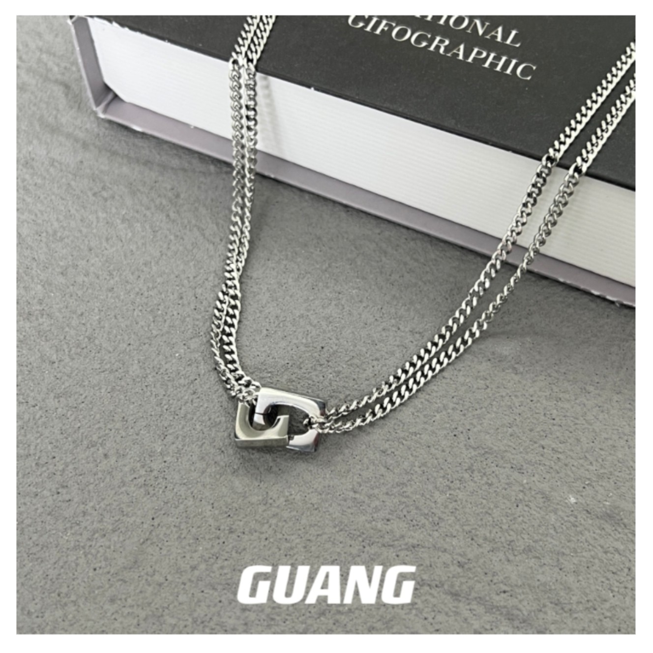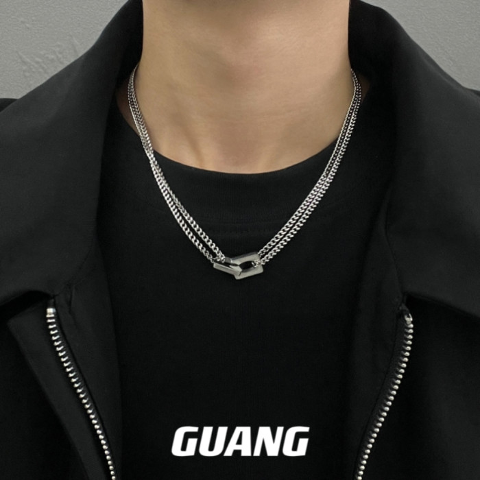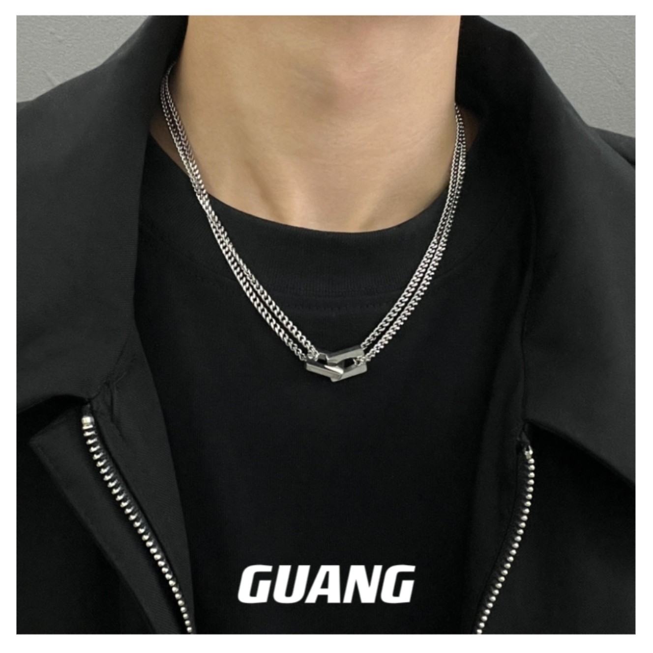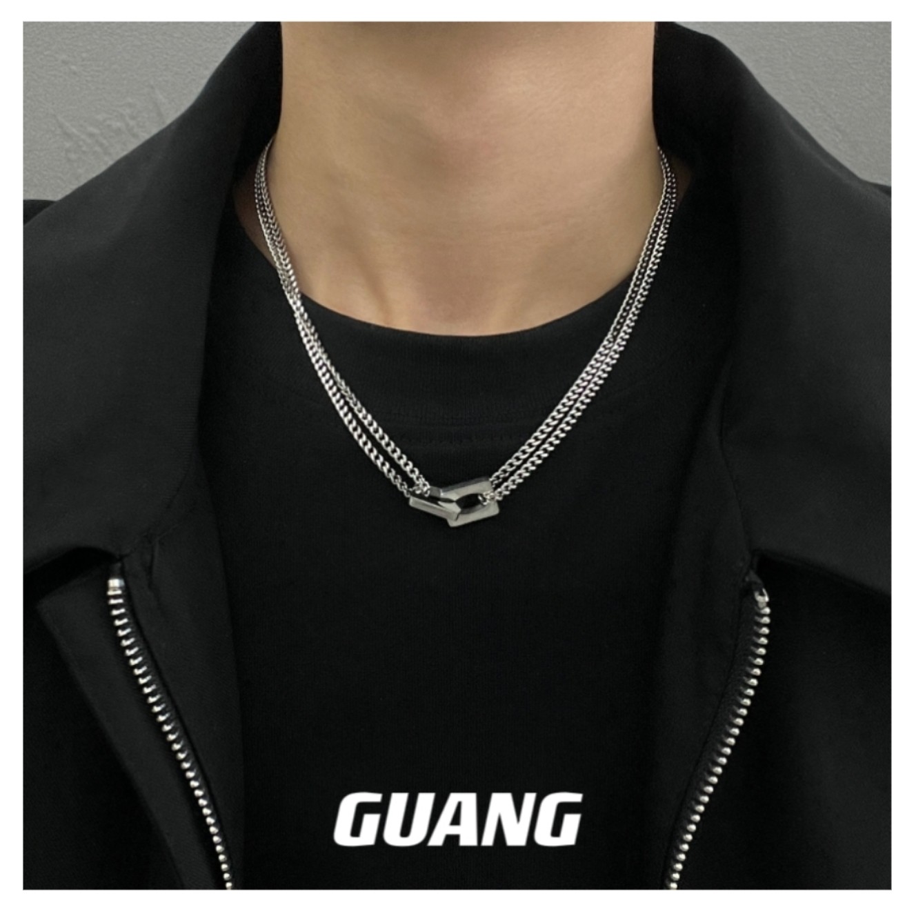 GUANG【檀健次同款】雙環雙層項鍊男女潮流高級感鈦鋼鎖骨鍊配飾
