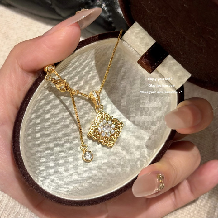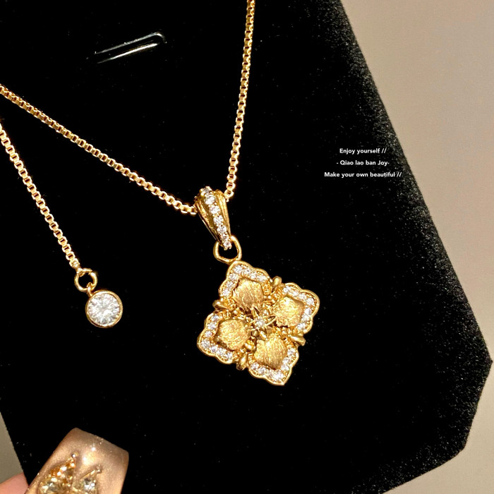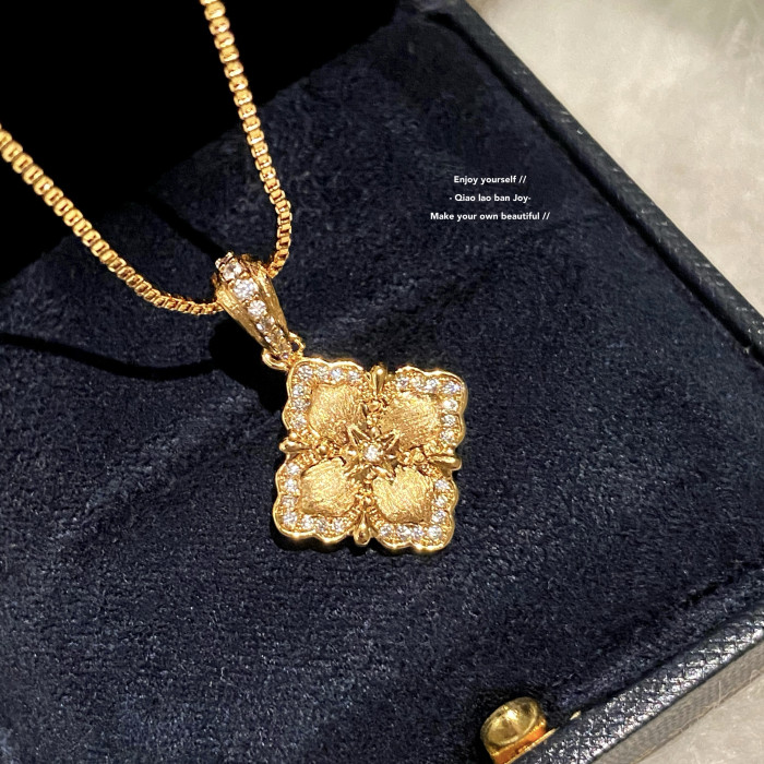 【喬老板Joy】四葉草項鍊拉絲金色雙面閃鑽鎖骨鍊復古宮廷布契潮