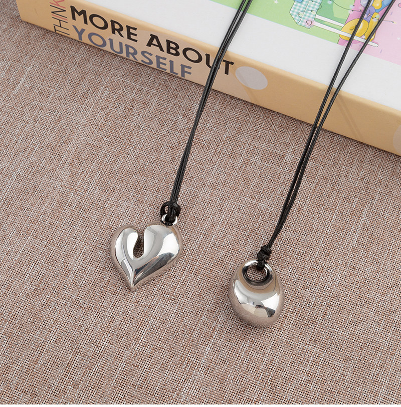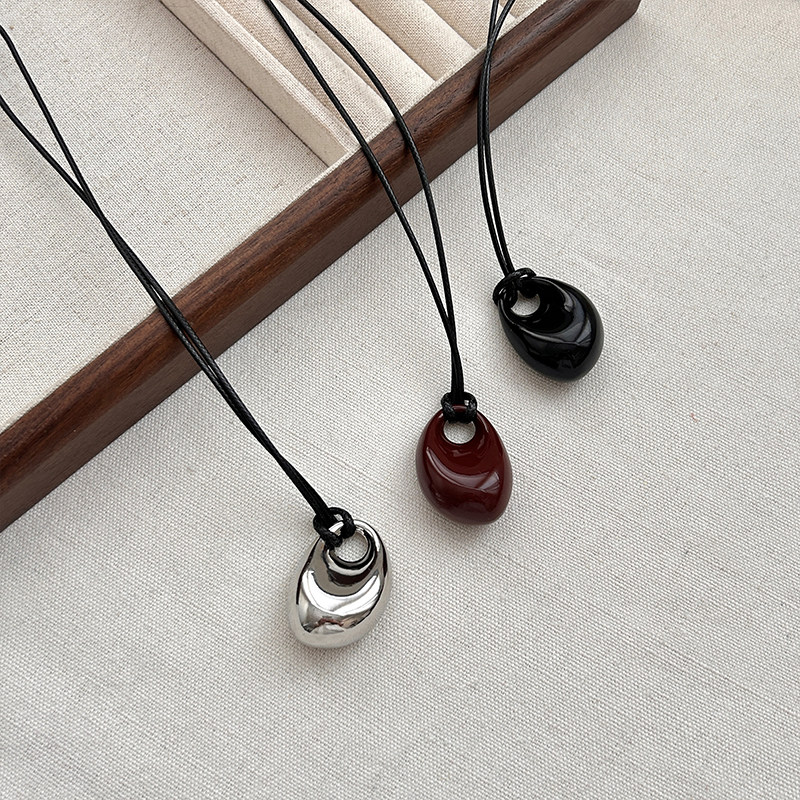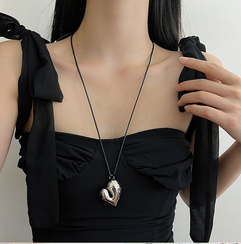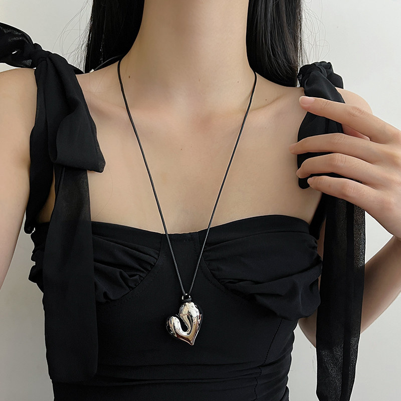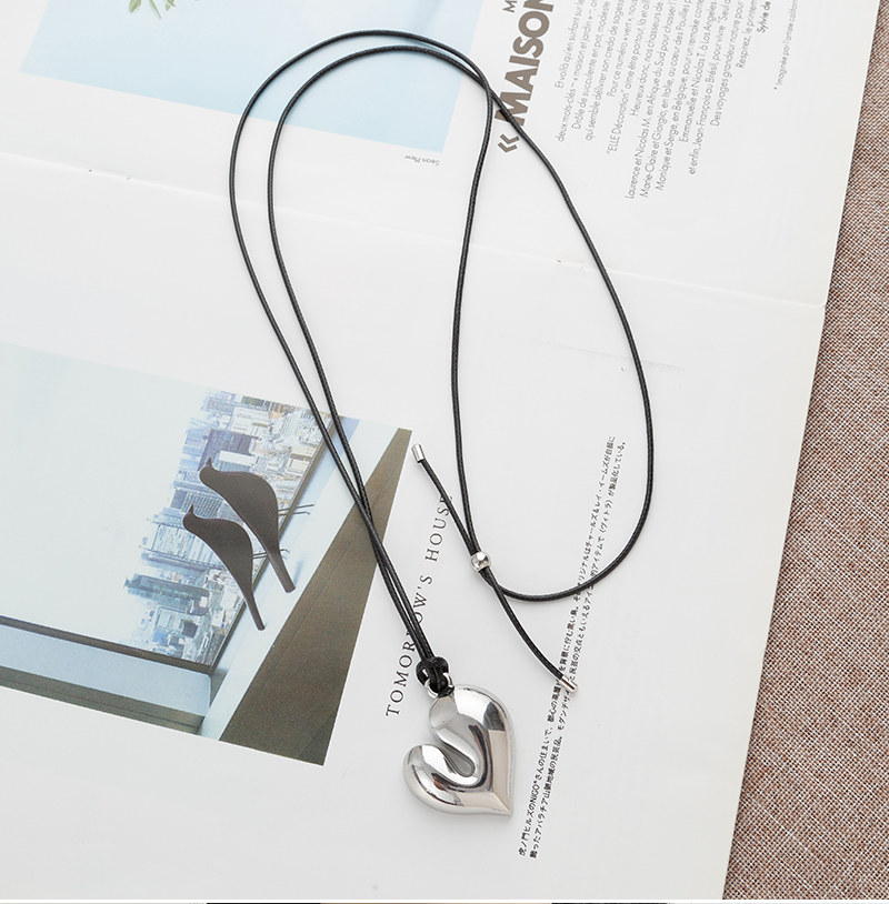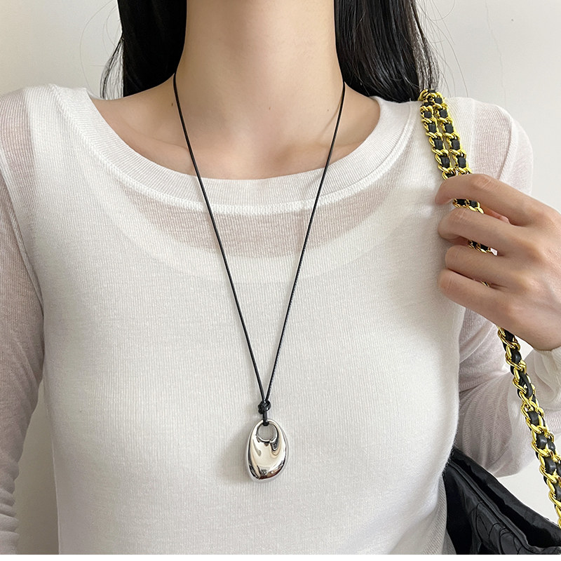 銀色豆豆愛心吊墜黑繩項鍊女簡約小衆設計高級感可調節長款毛衣鏈