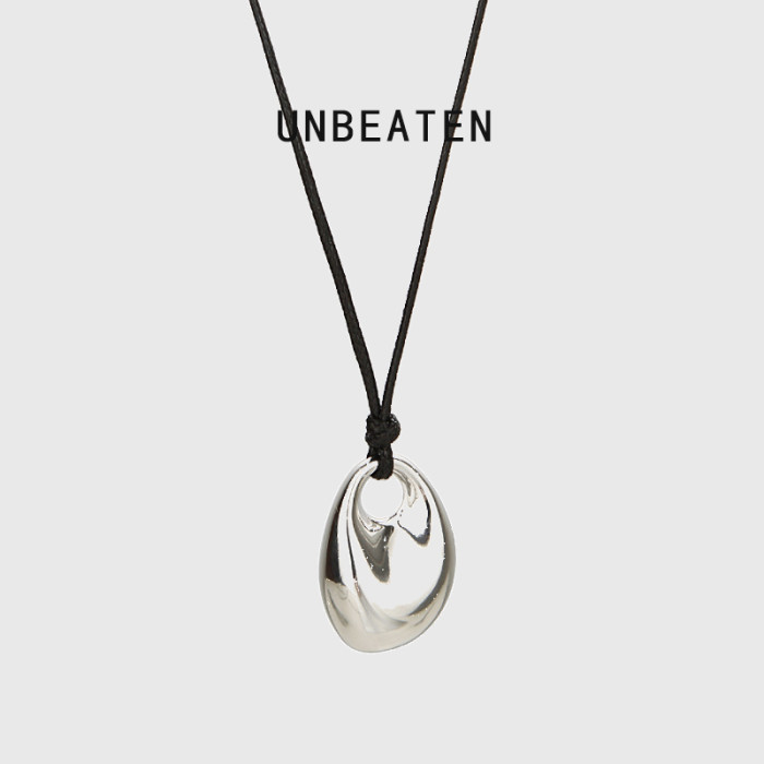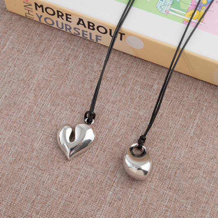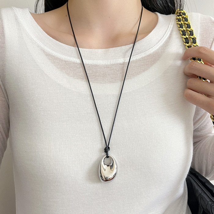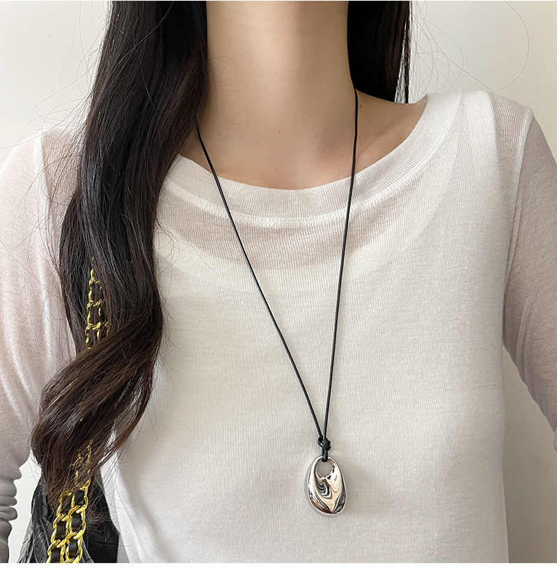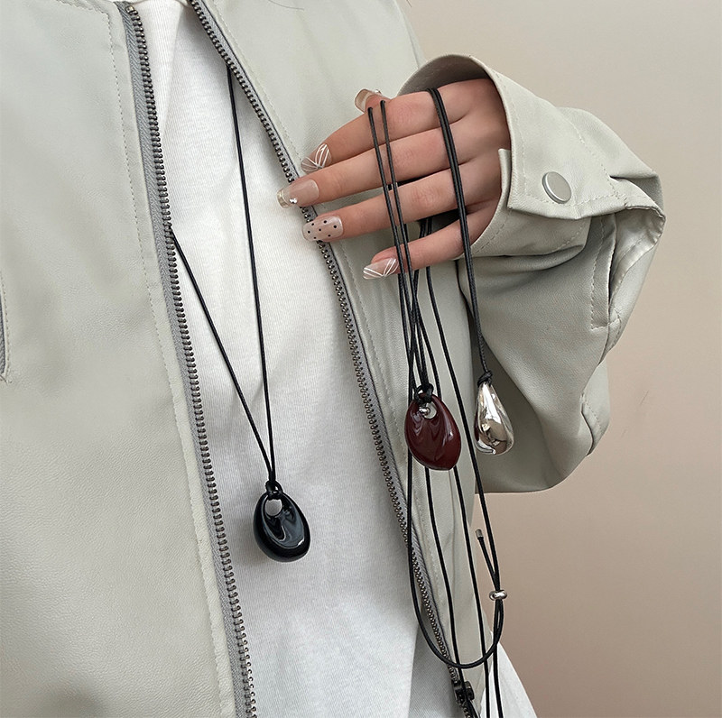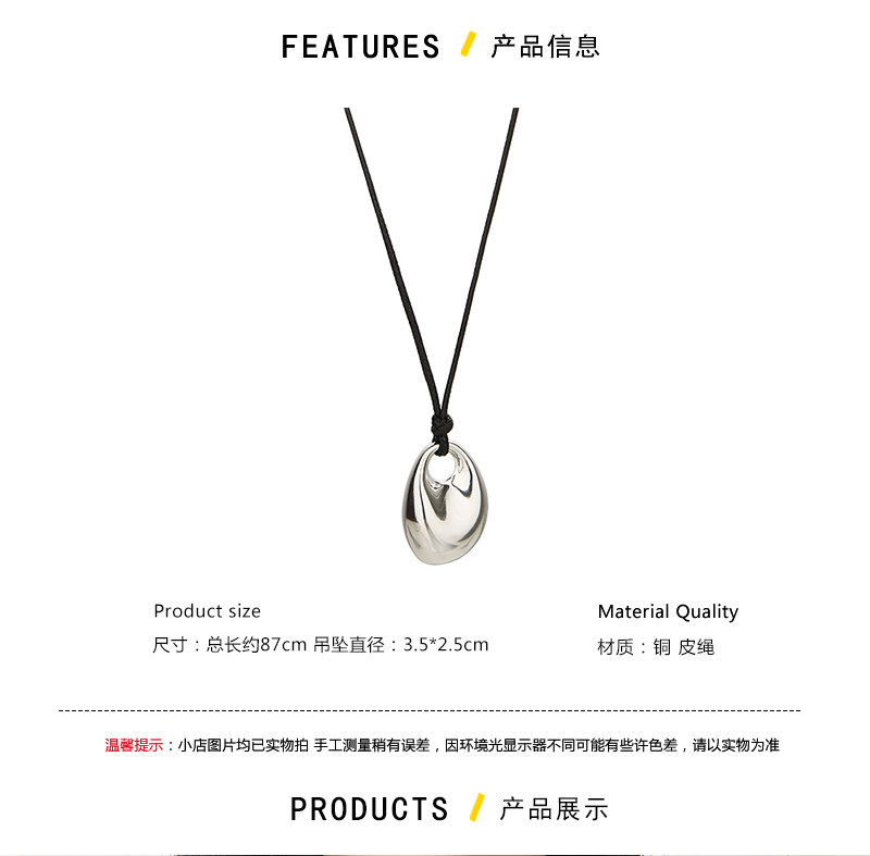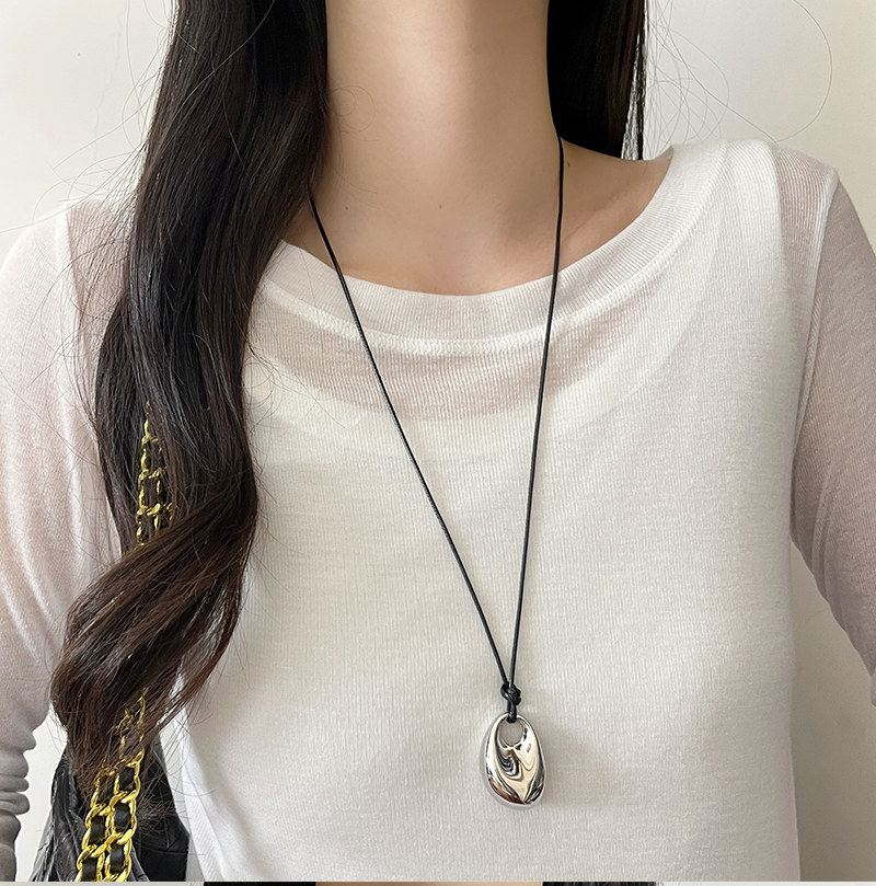 銀色豆豆愛心吊墜黑繩項鍊女簡約小衆設計高級感可調節長款毛衣鏈