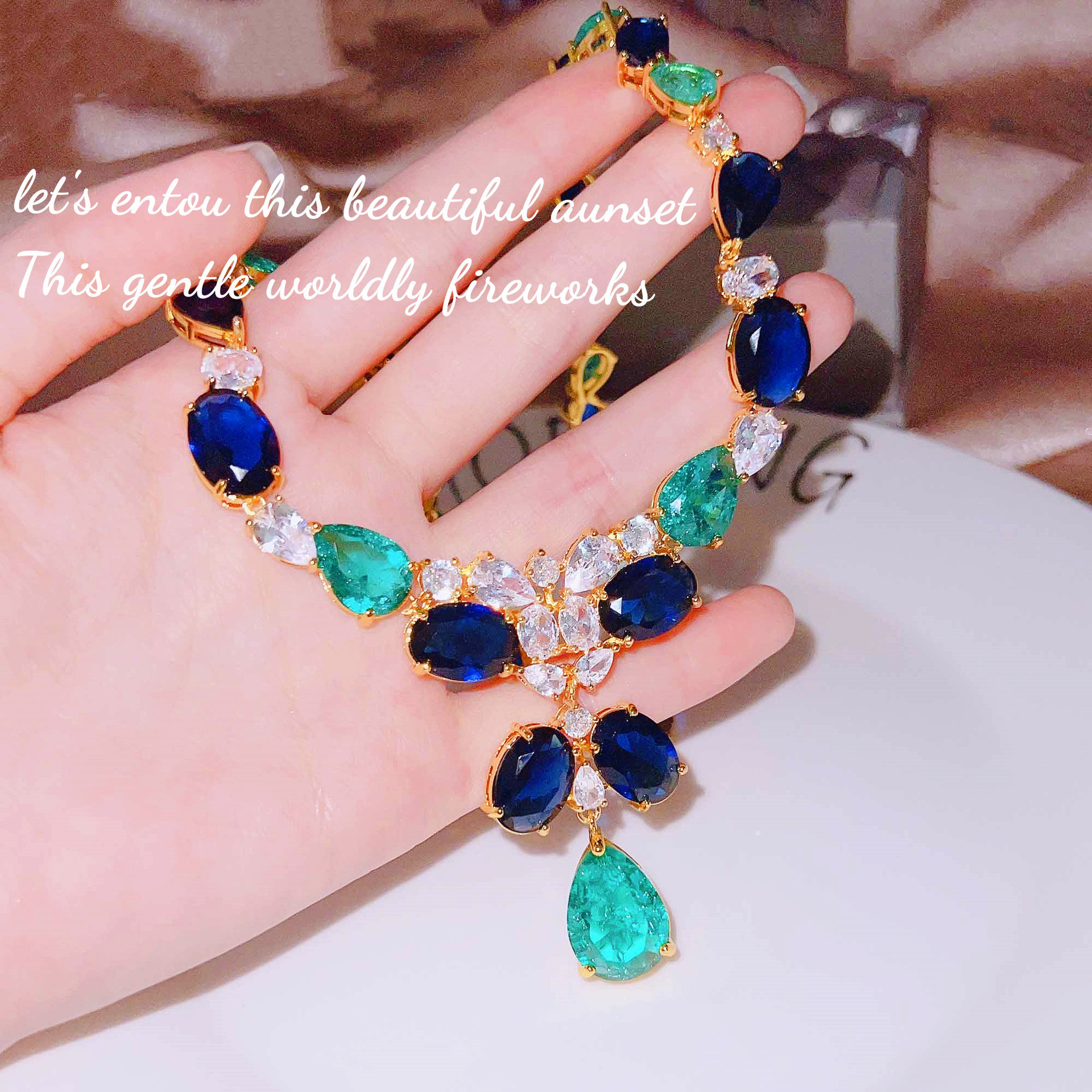 小紅書推薦高定珠寶碧璽祖母綠項鍊 重工奢華璀璨撞色彩寶套鏈女