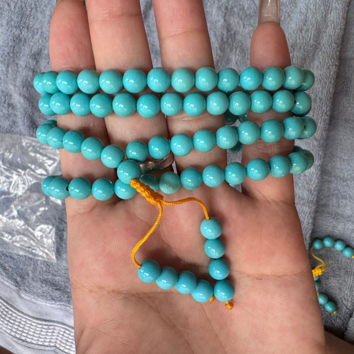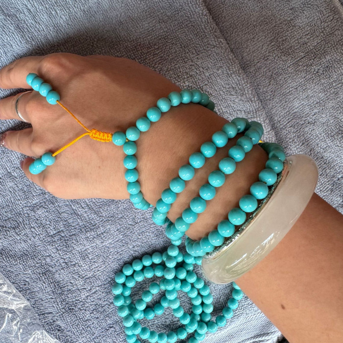 天然菱鎂礦圓珠手鏈108顆彿珠長鏈綠松石多圈手串可拆卸diy配飾