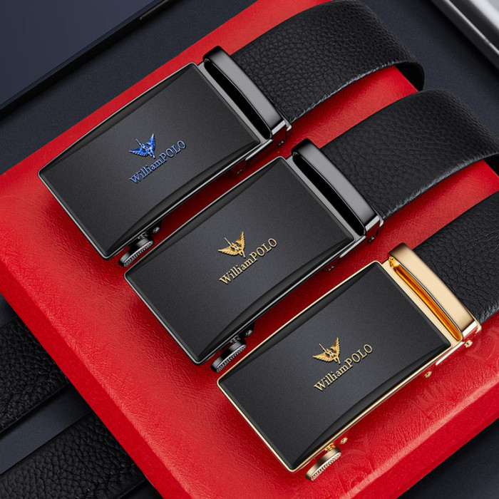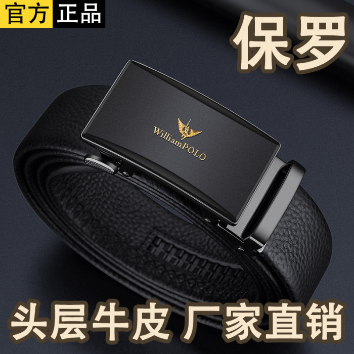 英皇保羅皮帶男士真皮自動釦頭層牛皮皮帶腰帶男商務皮帶男款