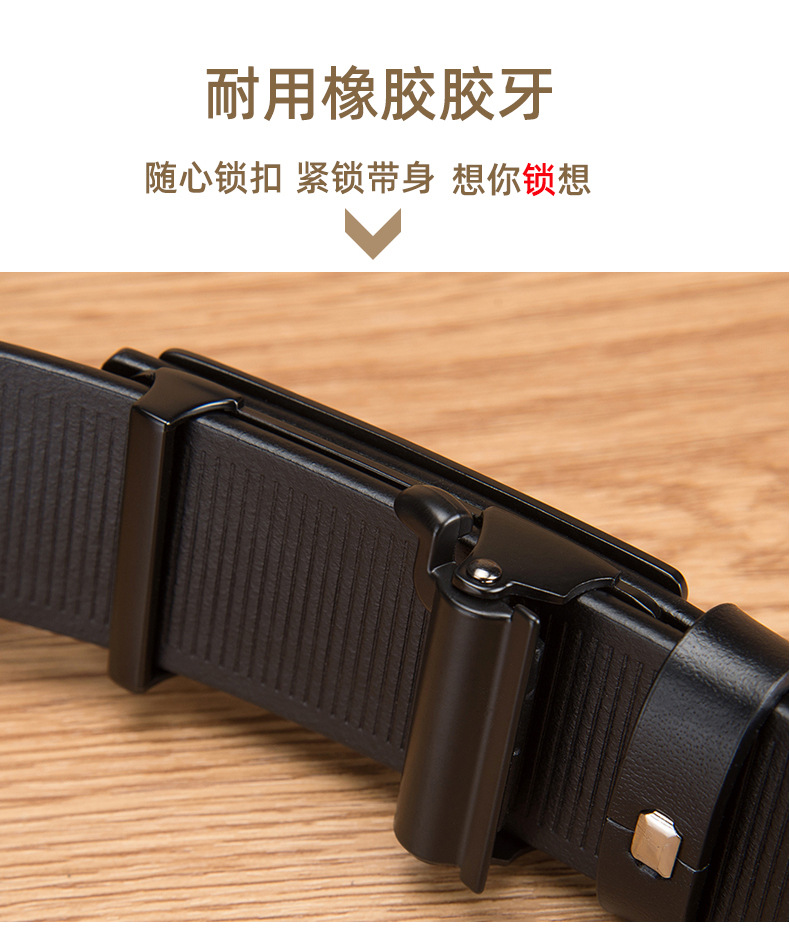 新款鱷魚紋無牙自動釦內穿商務腰帶頭層牛皮褲腰帶金色釦男士皮帶