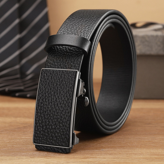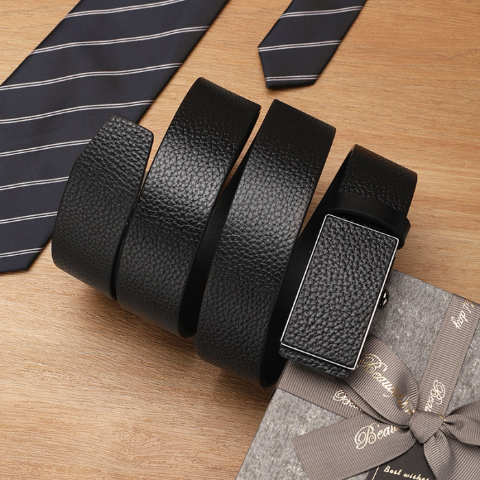 頭層牛皮皮帶男真皮無牙自動釦男士腰帶真皮個性潮流中年青年褲帶