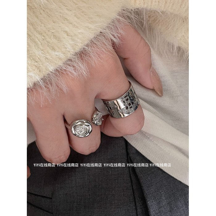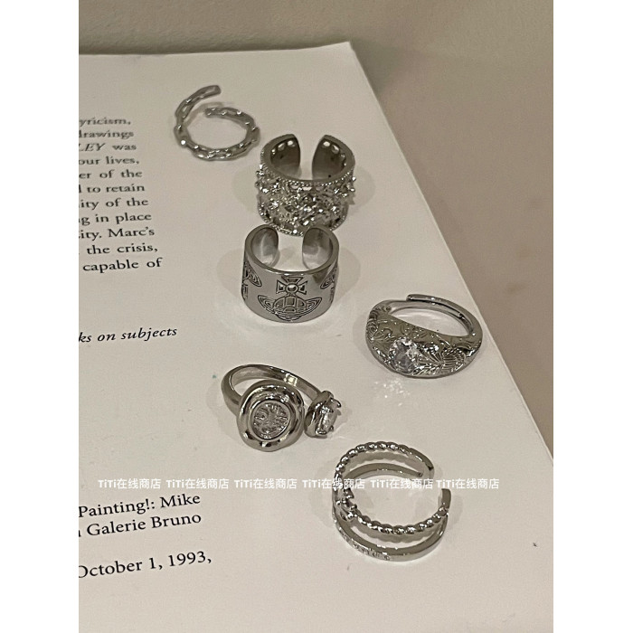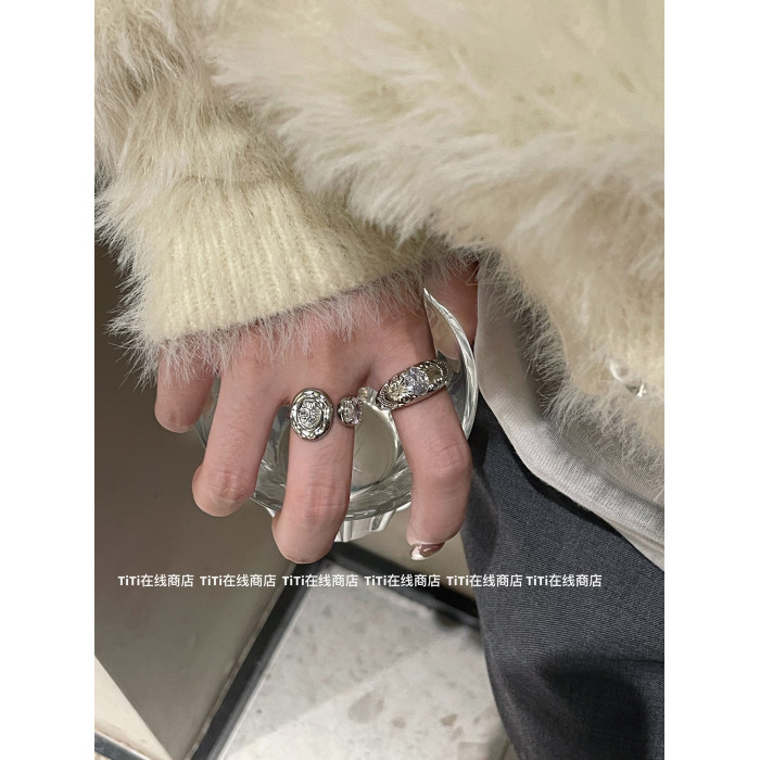 中古戒指系列!金感輕奢微鑲寬版戒指時髦復古鏤空花紋食指戒指環
