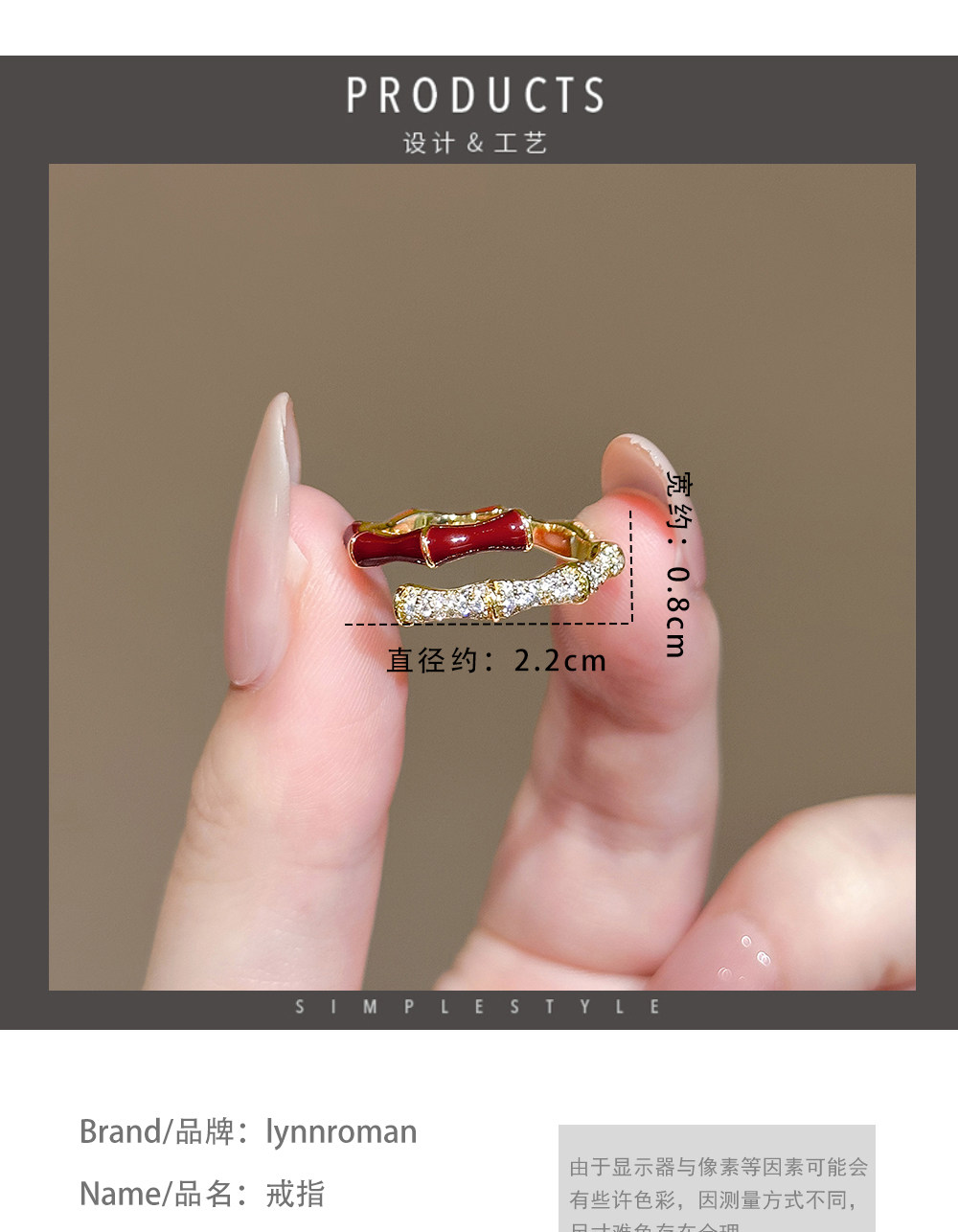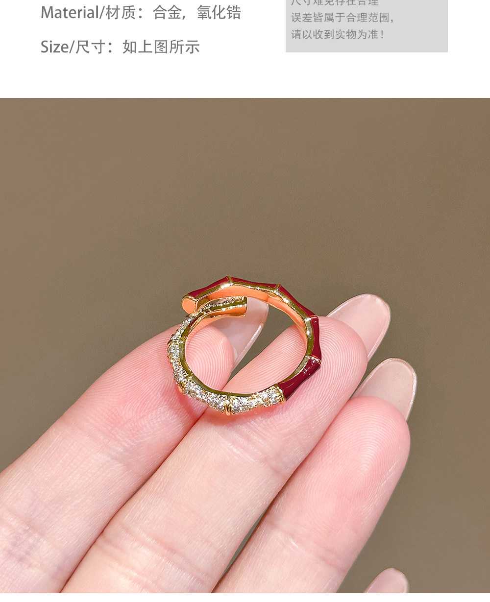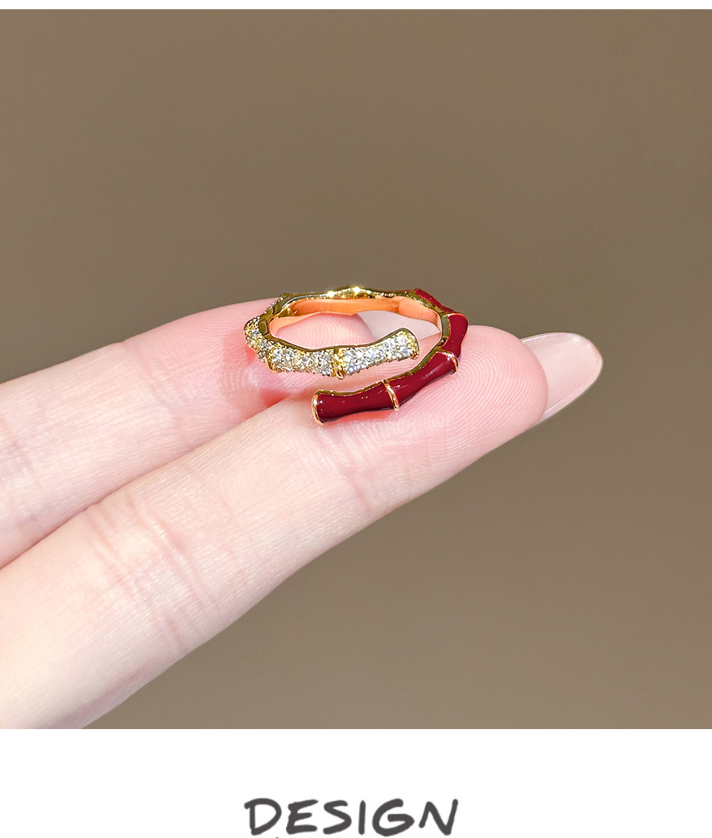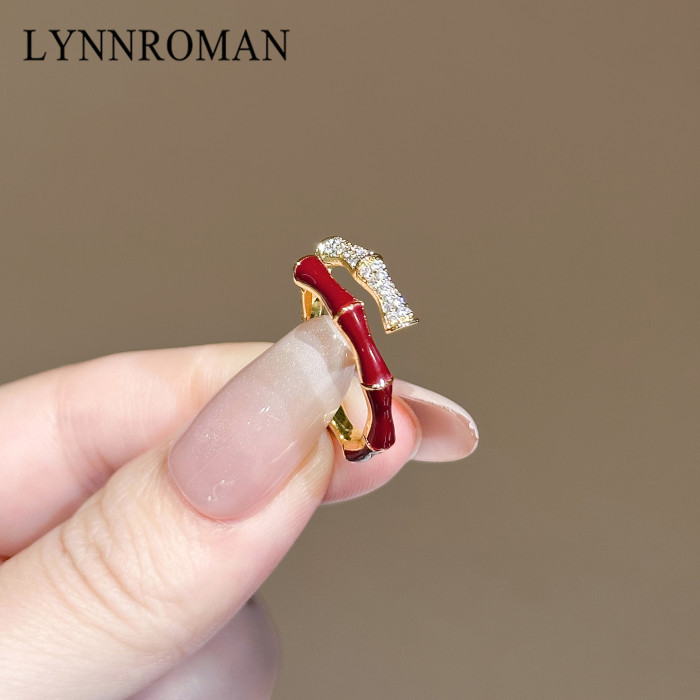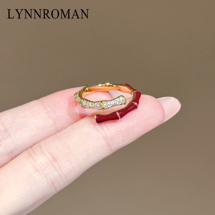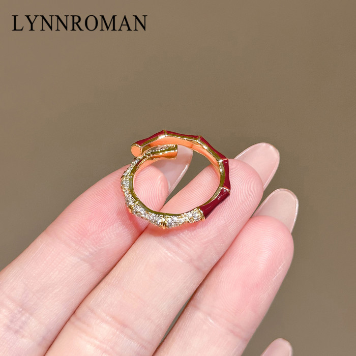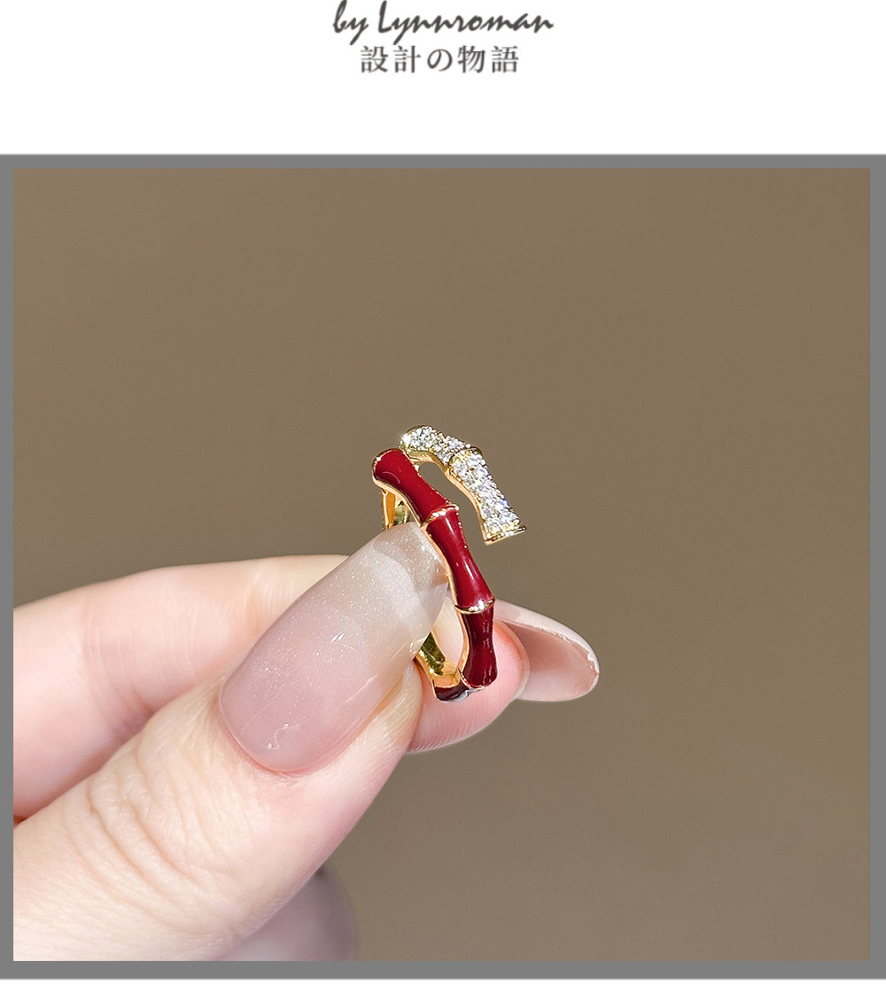 LYNNROMAN紅色竹節戒指女高級輕奢小衆設計食指戒琺瑯彩開口指環