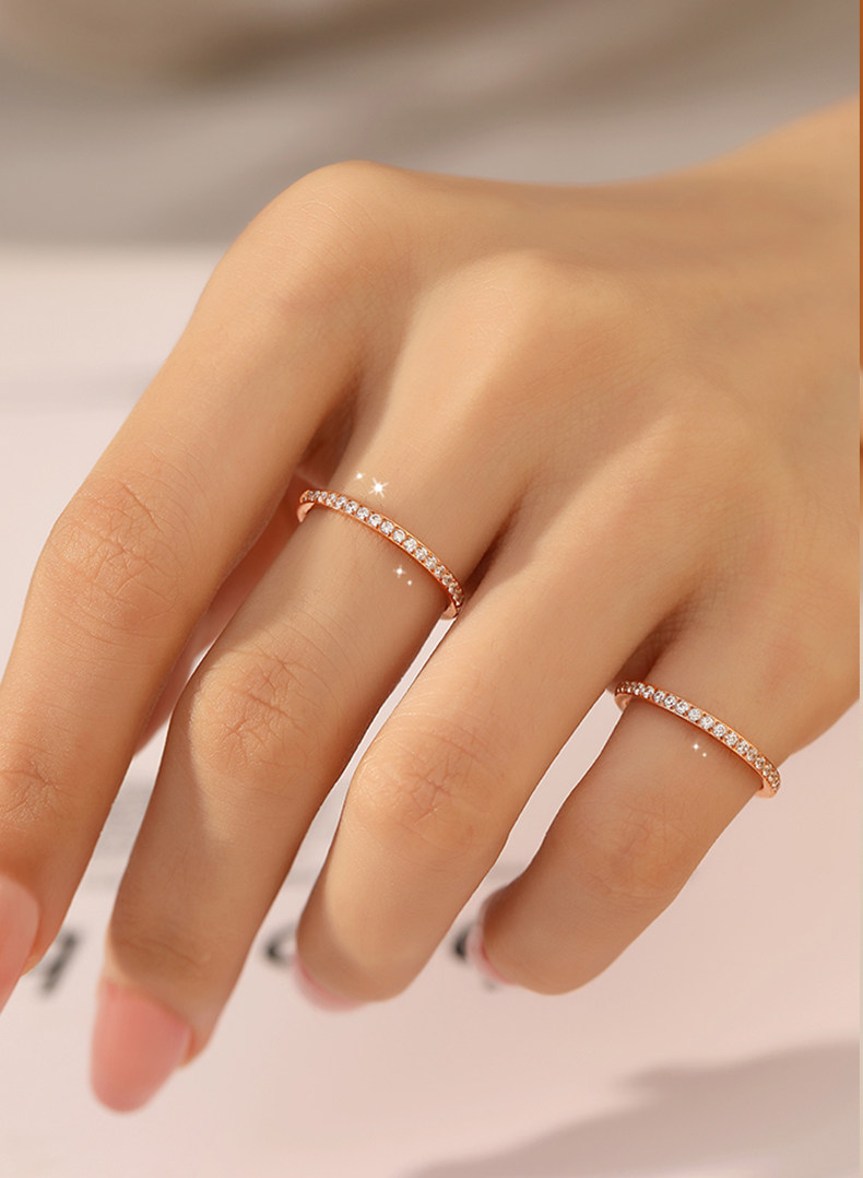 細版20鑽戒指細款碎鑽排鑽曡戴尾戒小指尾指女18K玫瑰金小衆設計