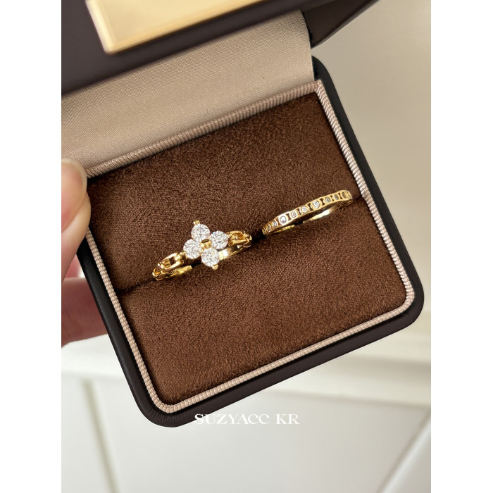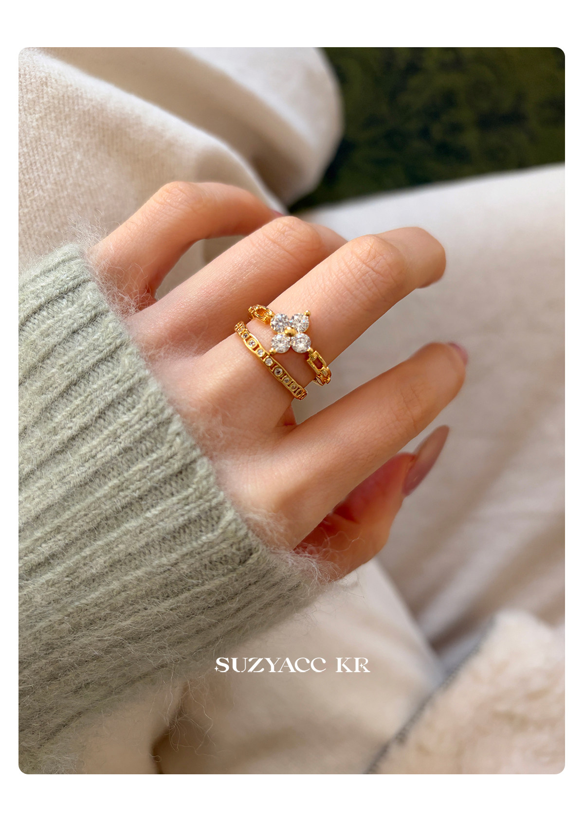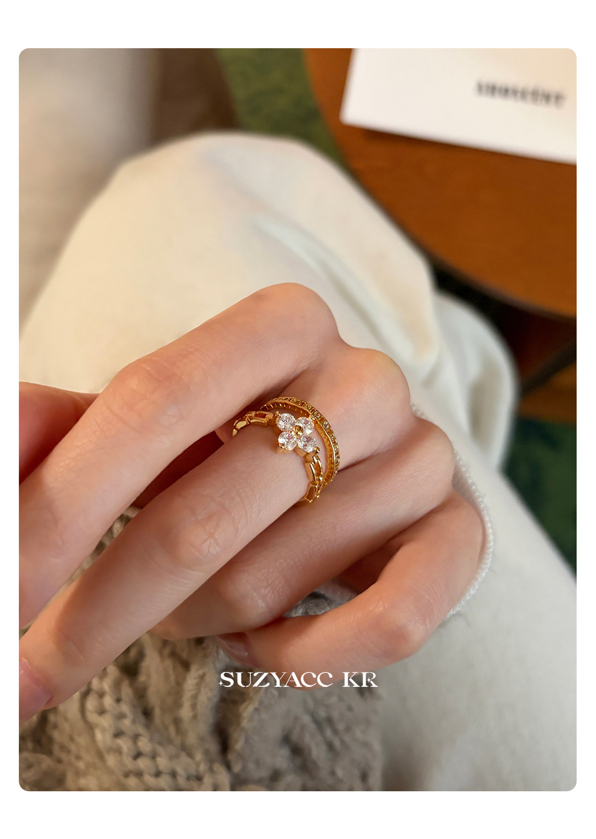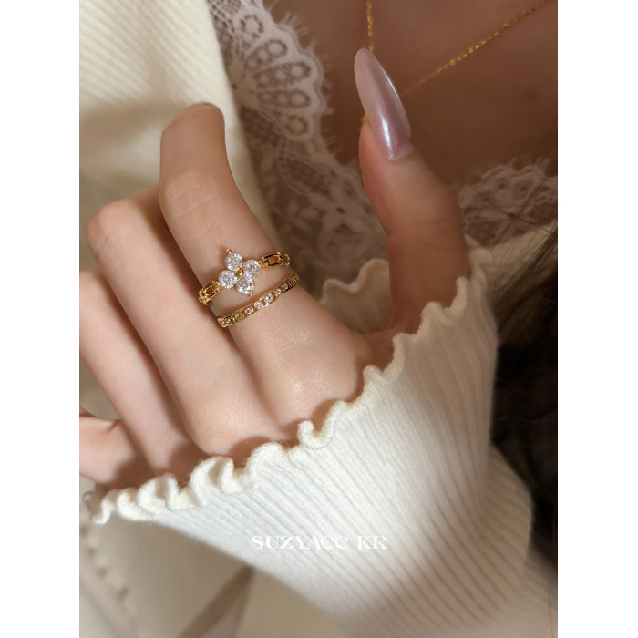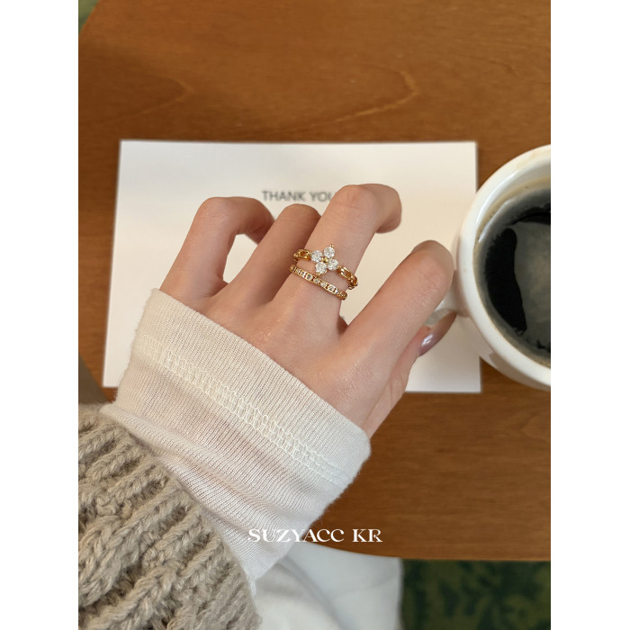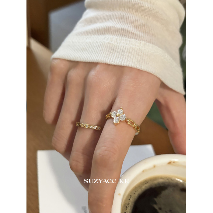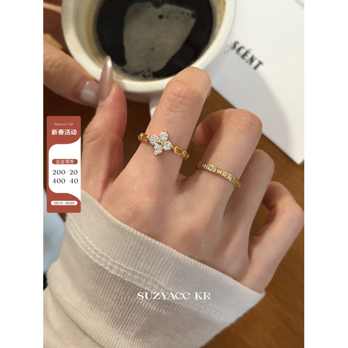 suzyacc kr合成鋯石四葉草鏈條戒指小衆設計感食指戒氣質高級指環
