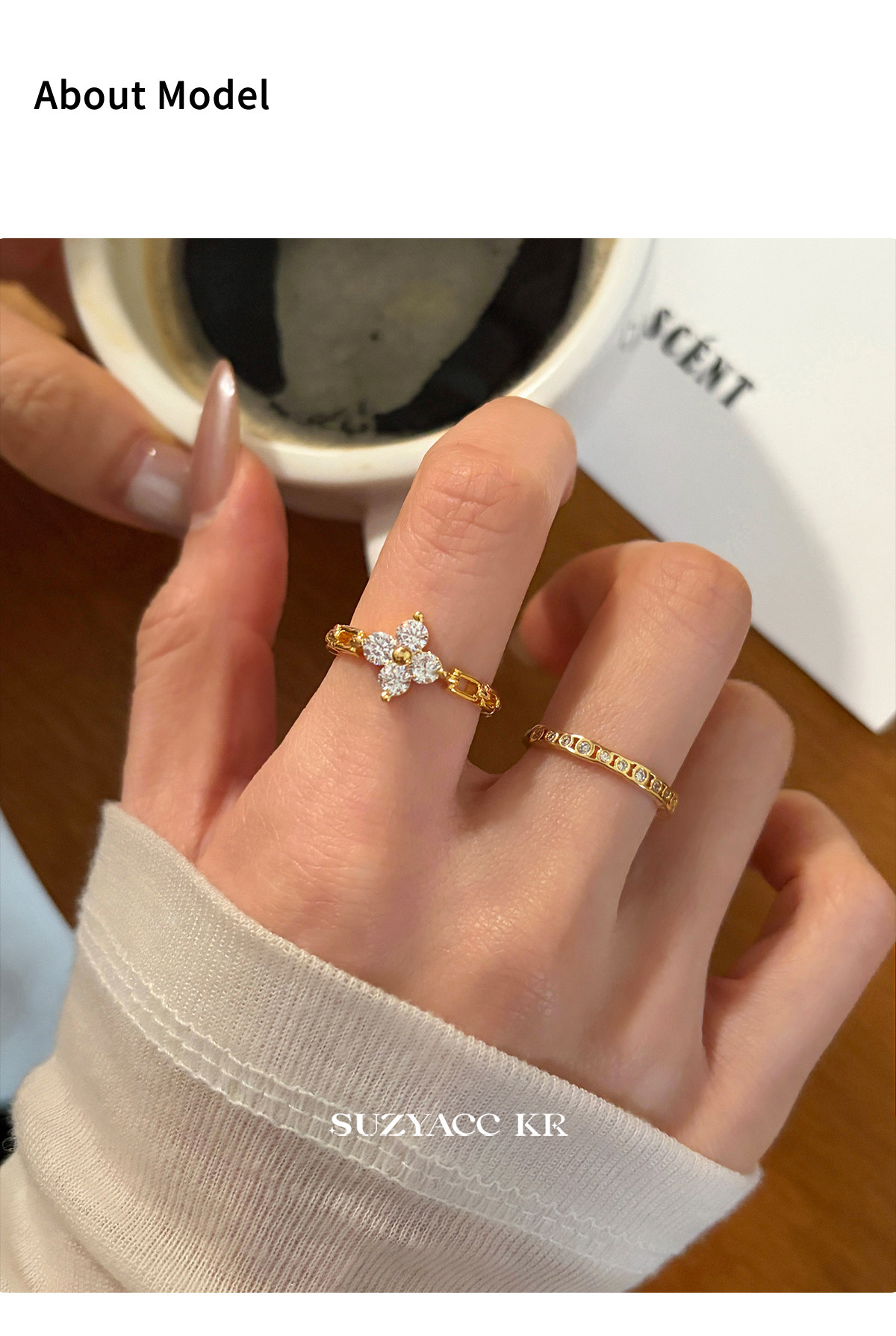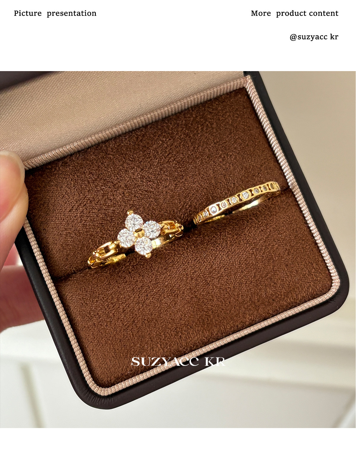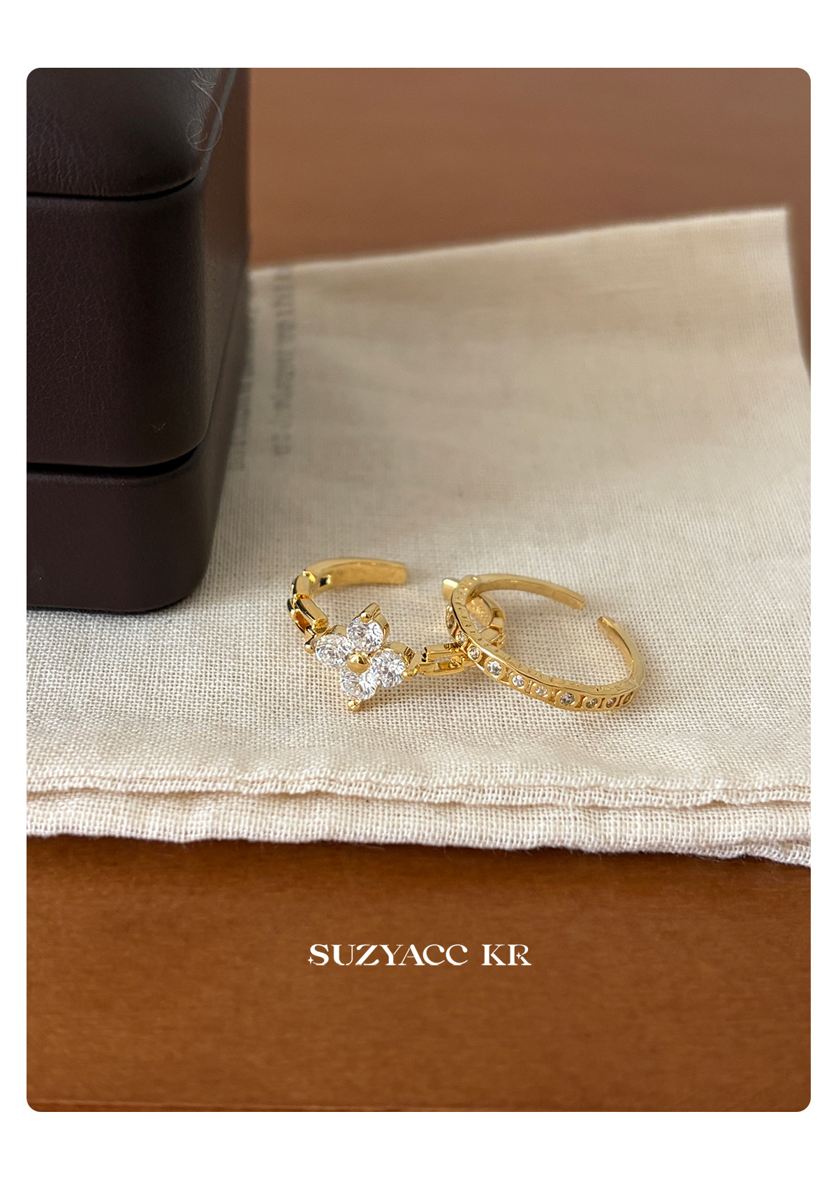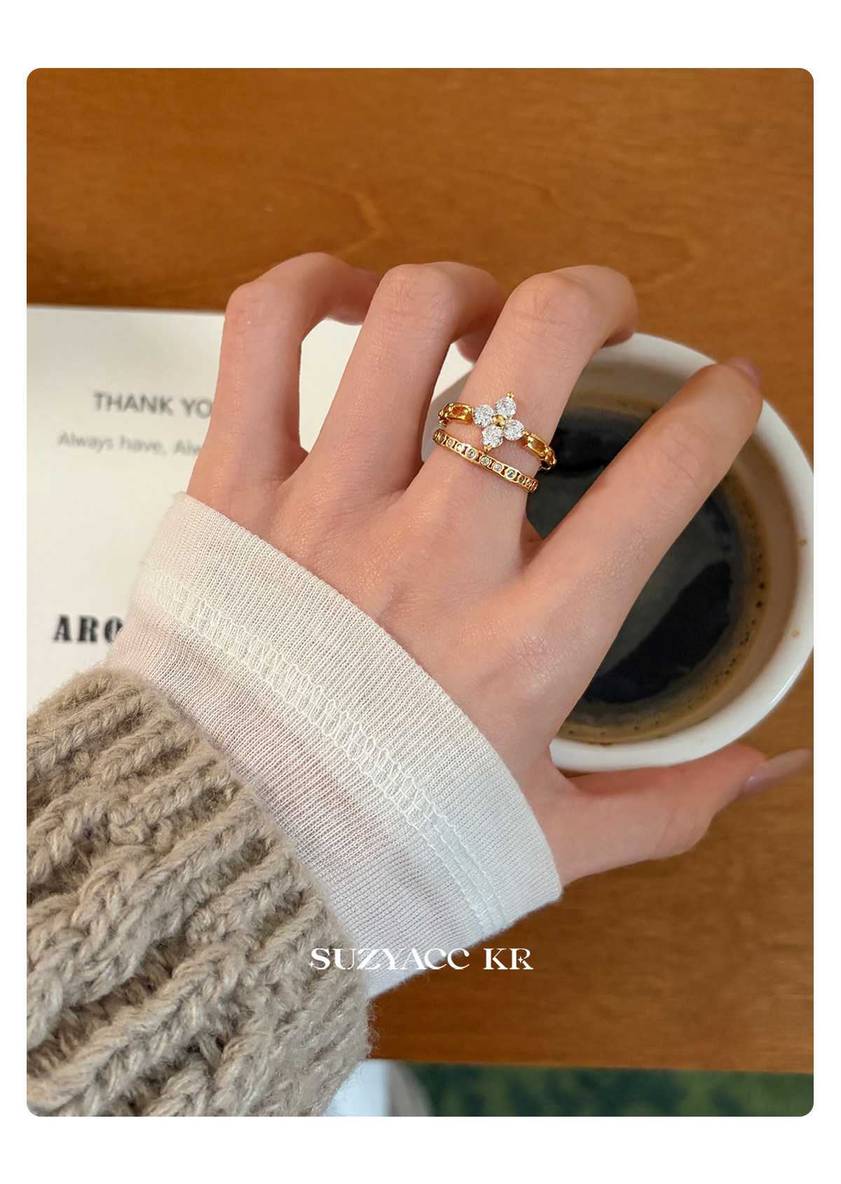 suzyacc kr合成鋯石四葉草鏈條戒指小衆設計感食指戒氣質高級指環