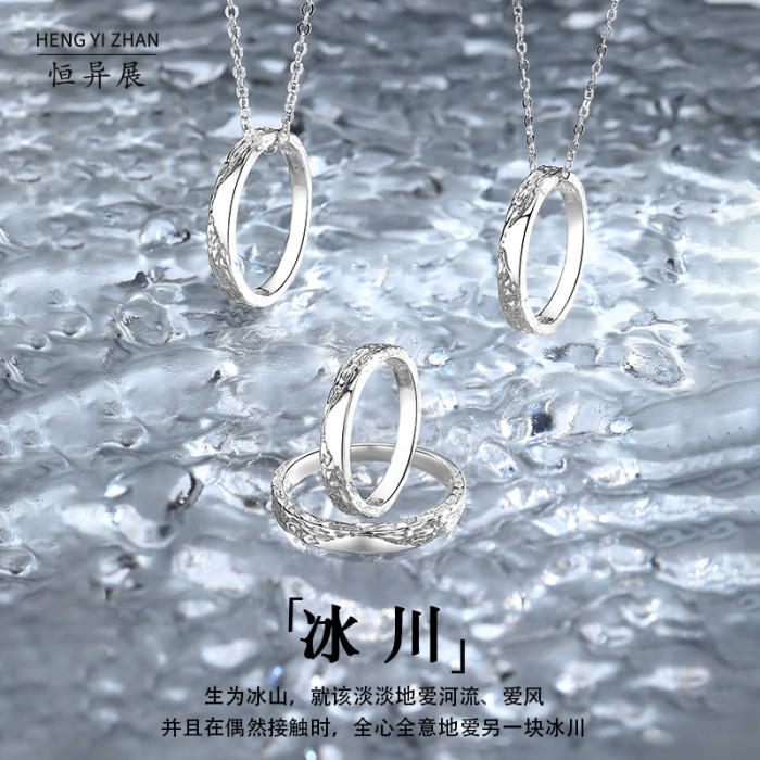 冰川999足銀情侶戒指如初一對小衆設計閉口純銀自律對戒可刻字