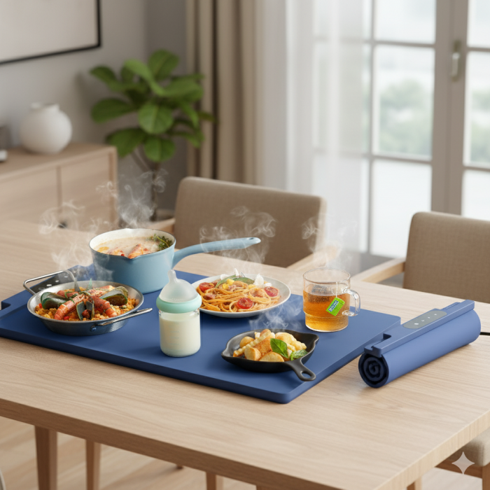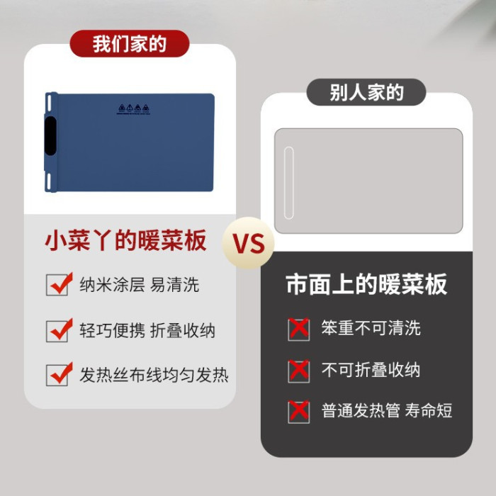 1527958 方形暖菜板 熱菜熱飯盤防滑餐桌加熱恒溫柔性矽膠可卷可折曡收納