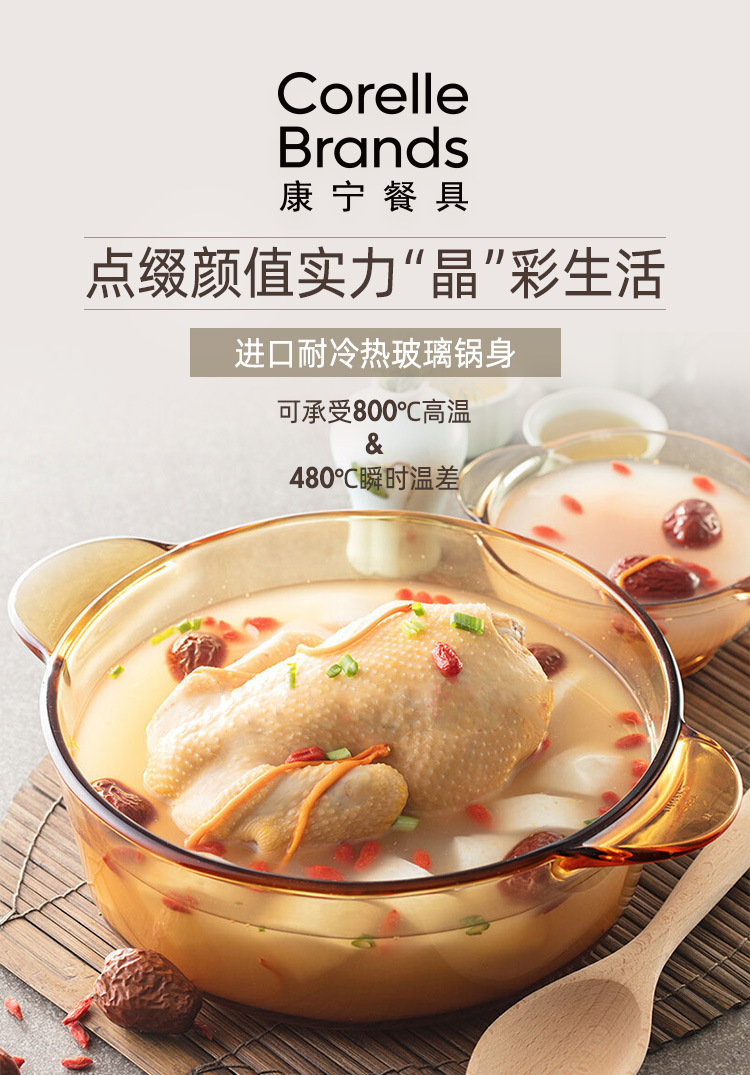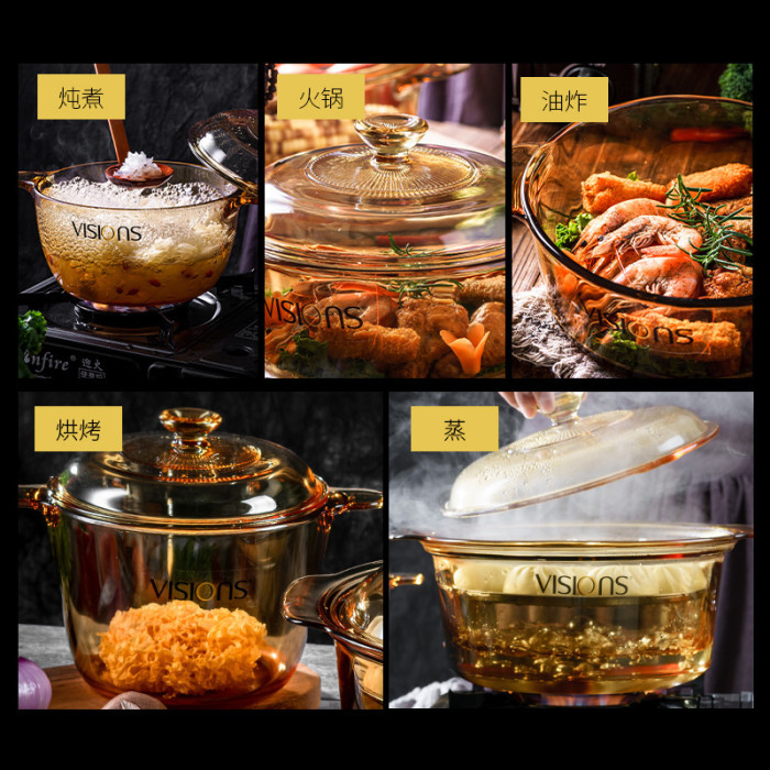 美國康寧琥珀鍋帶琥珀蒸格餐飲家用耐高溫玻璃蒸鍋燉鍋明火直燒