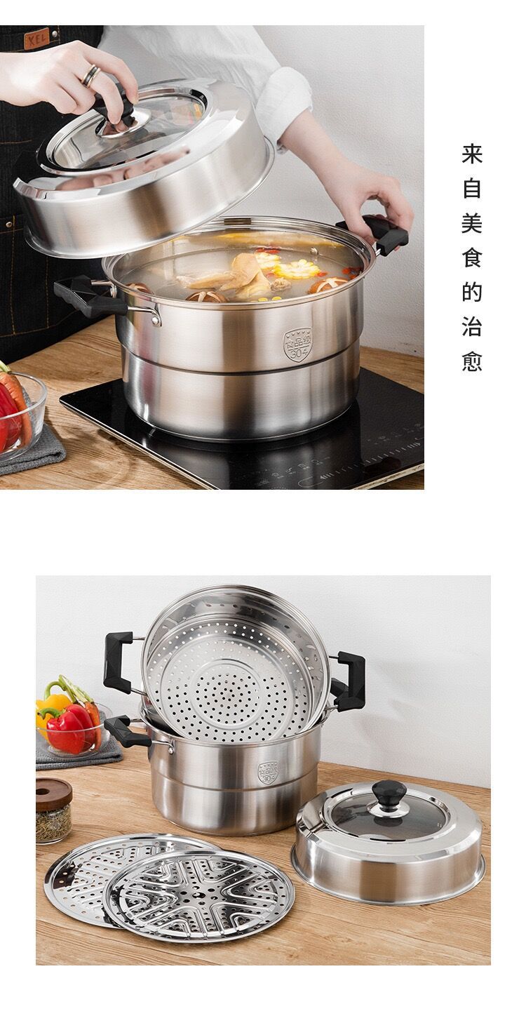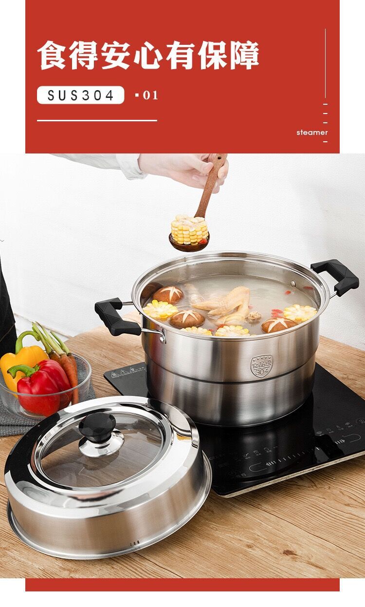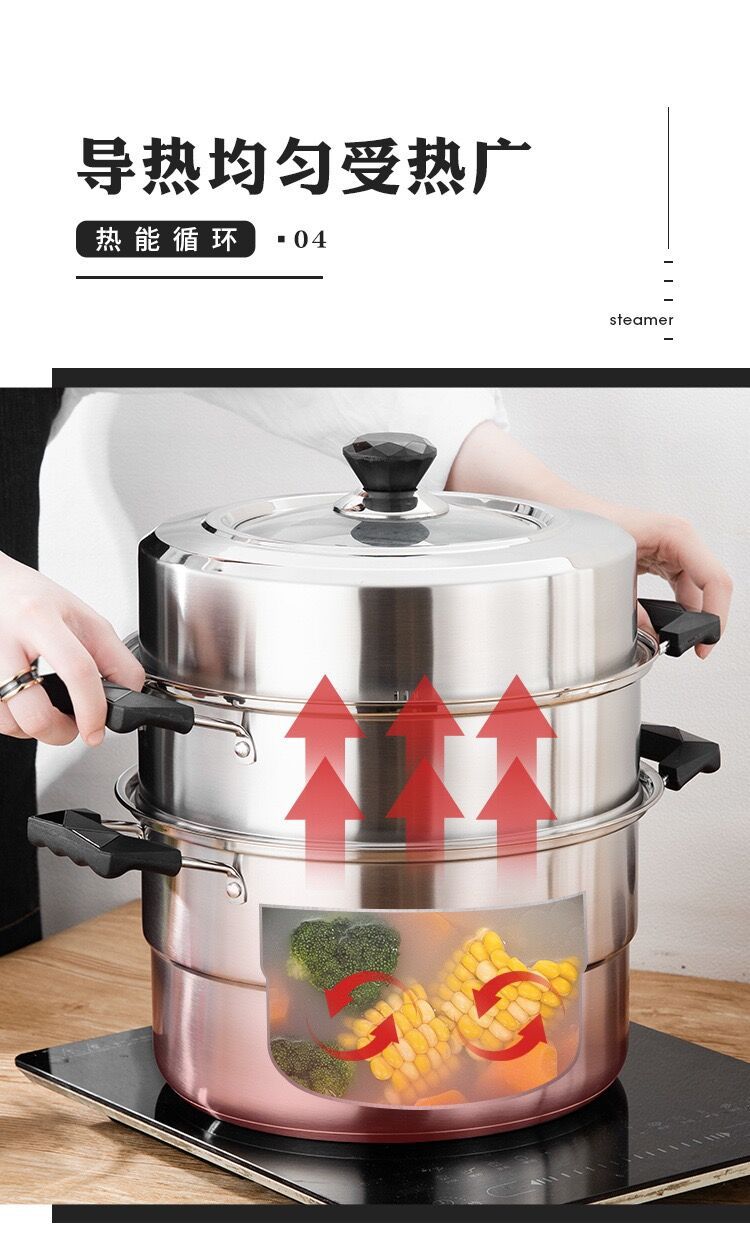 304不鏽鋼加厚三層蒸鍋家用蒸格蒸籠屜電磁爐瓦斯燉煮燜湯鍋商用