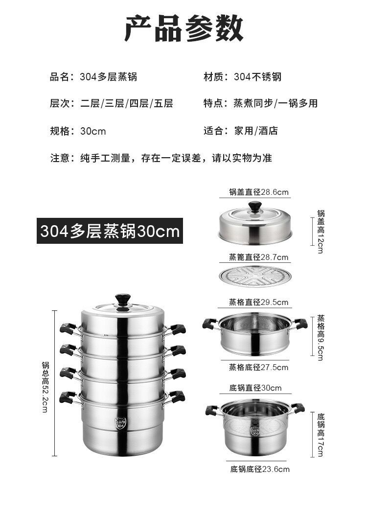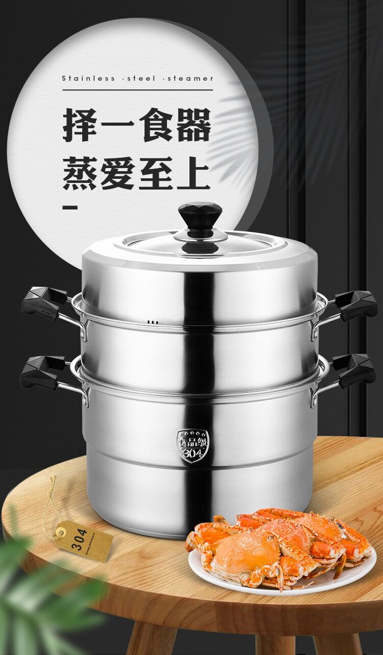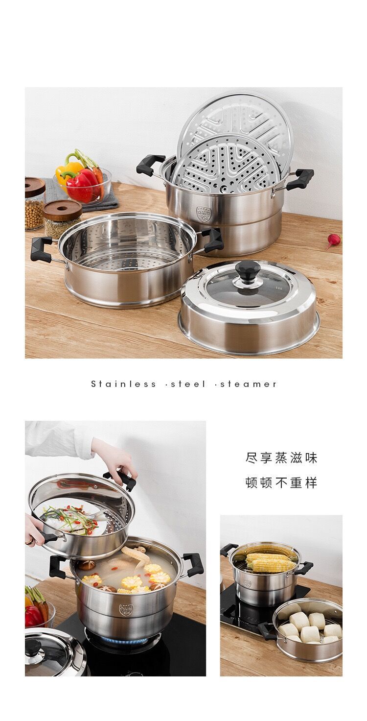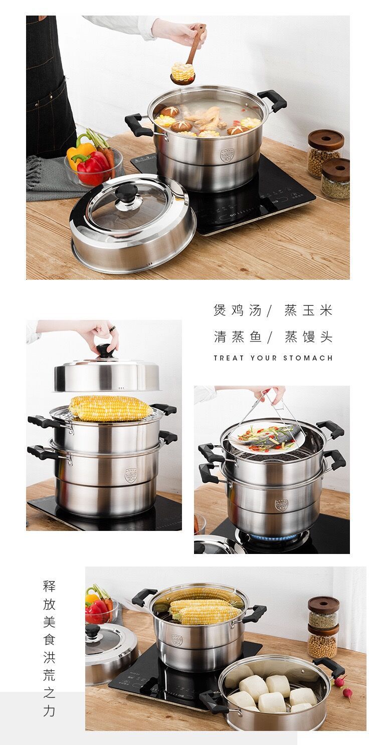304不鏽鋼加厚三層蒸鍋家用蒸格蒸籠屜電磁爐瓦斯燉煮燜湯鍋商用