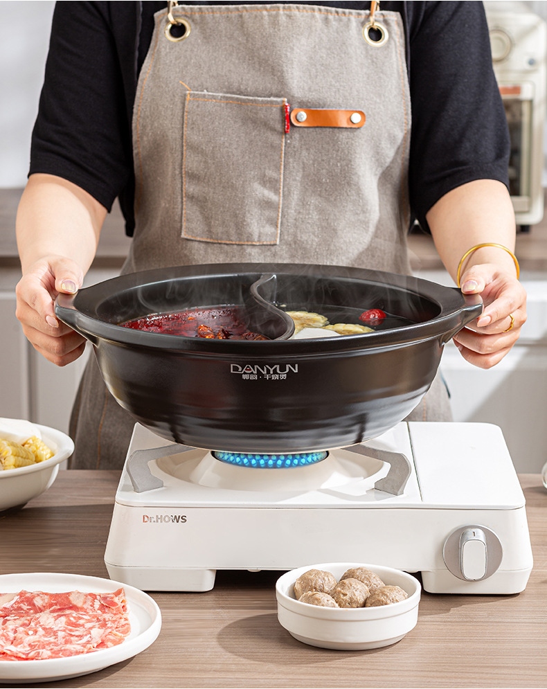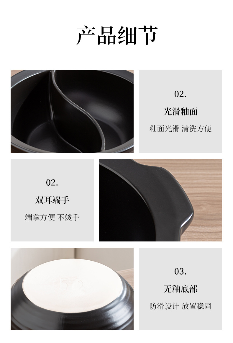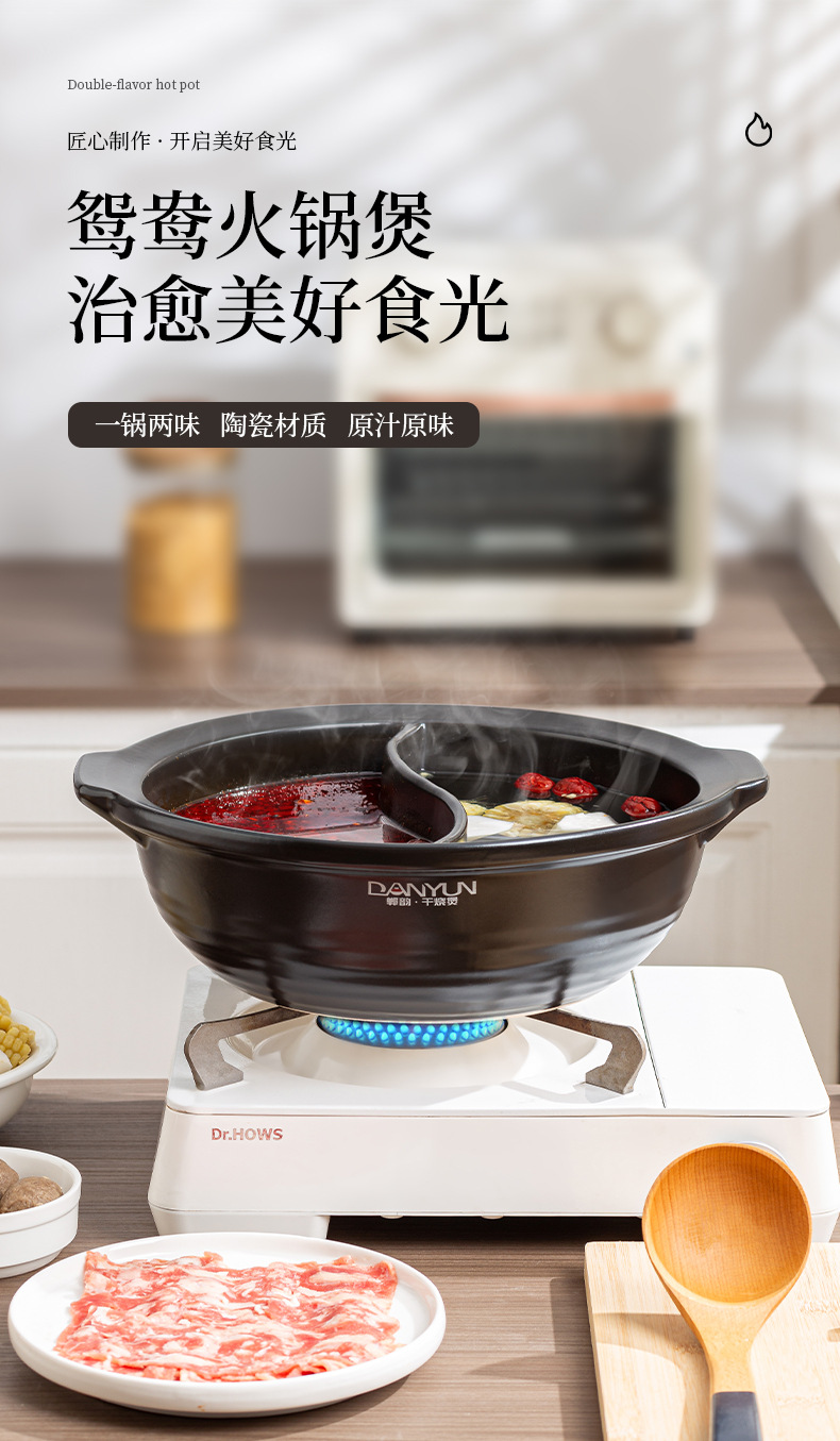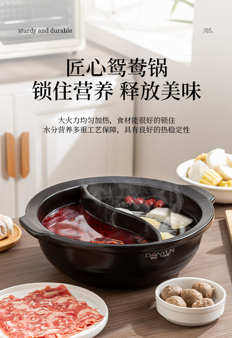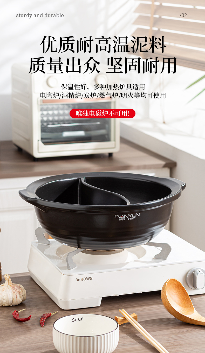鄲韻陶瓷砂鍋家用大容量煲湯鍋明火電陶爐專用鴛鴦鍋火鍋乾燒不裂