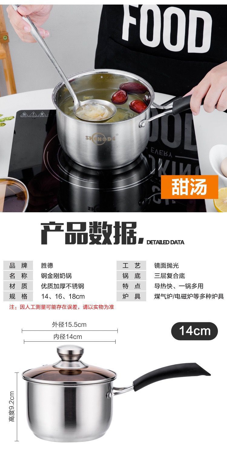 不鏽鋼單柄奶鍋家用不沾煮湯粉泡麵煲粥輔食熱牛奶小鍋電磁爐瓦斯