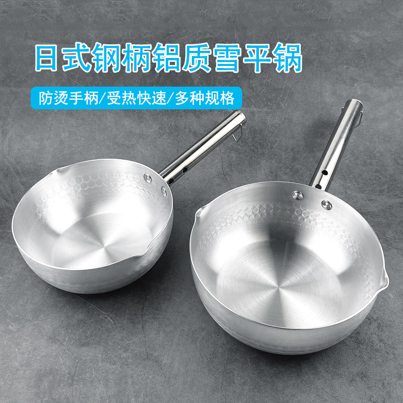 日式鋁製鋼柄雪平鍋商用不沾煮湯粉米線泡麵生滾粥麻辣燙平底奶鍋