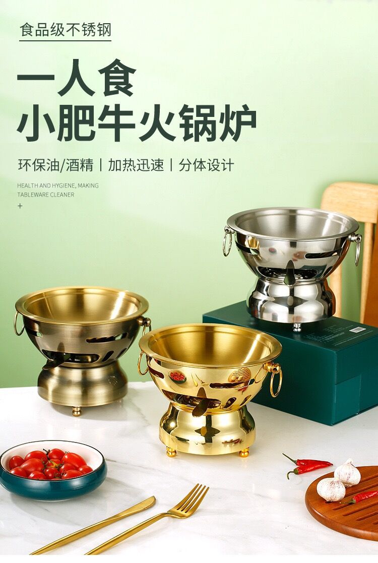 不鏽鋼環保油單人小火鍋爐乾鍋仔米村拌飯安格斯肥牛涮鍋一人一鍋