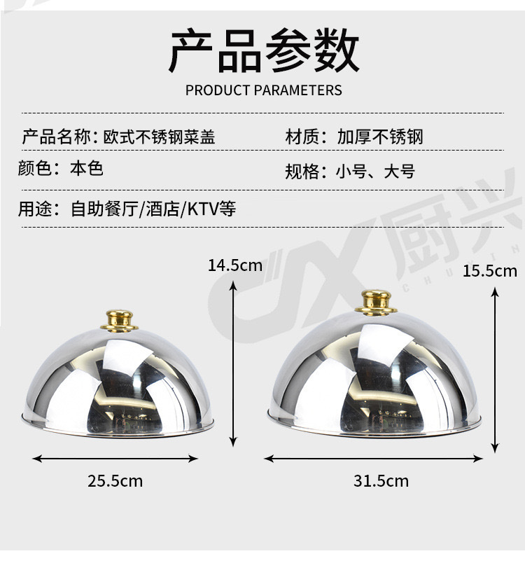 | 規格 | 12.5寸歐式不鏽鋼菜蓋 |