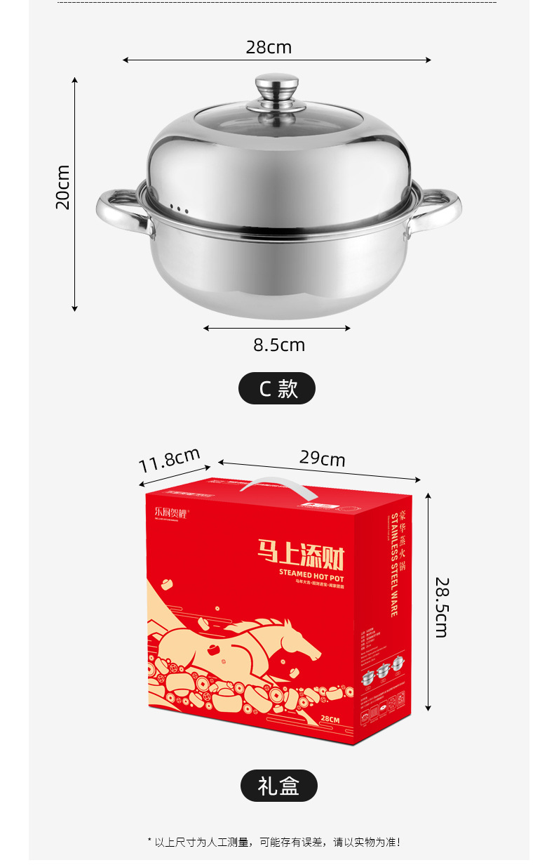 馬年不鏽鋼蒸鍋 28CM二層湯蒸鍋雙層蒸鍋電磁爐火鍋實用禮品鍋具