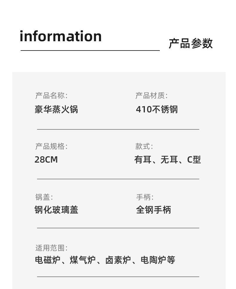 産品品名:豪華湯蒸鍋(帶耳/無耳/一體)