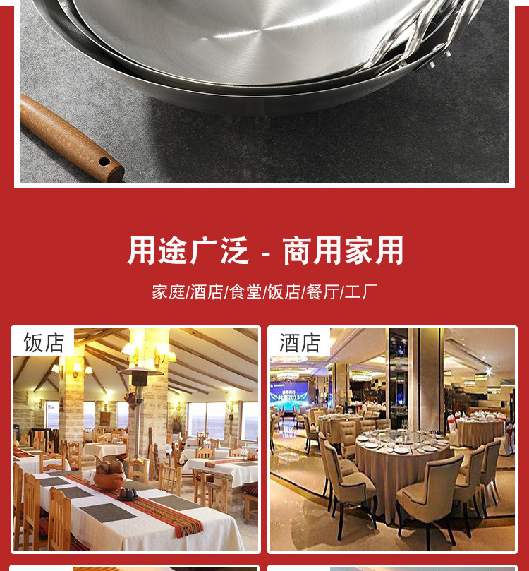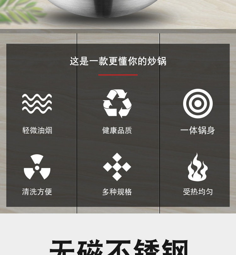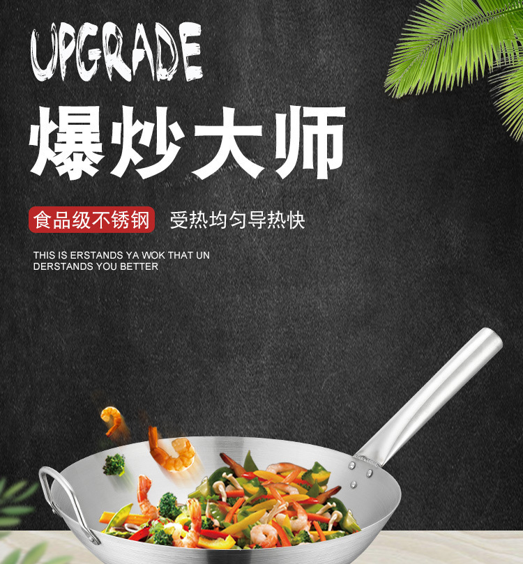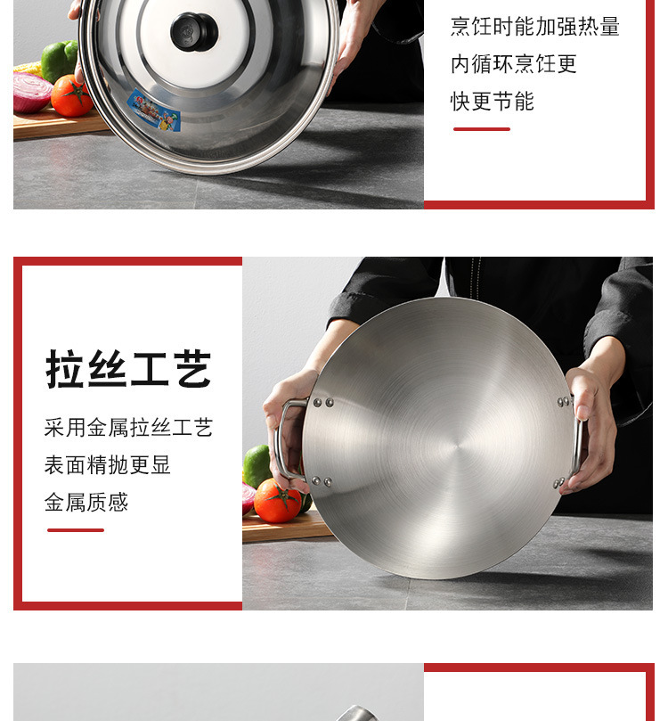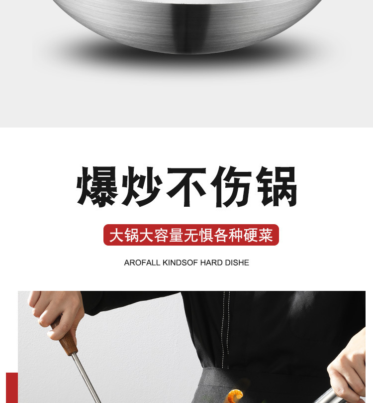 食品級無磁不鏽鋼鍋不生鏽無塗層炒菜鍋家用飯店商用餐廳加厚鐵鍋