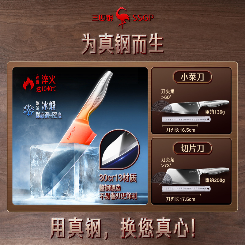 三四鋼®菜刀女士家用廚刀切片切肉刀廚房切菜刀鋒利不鏽鋼刀具