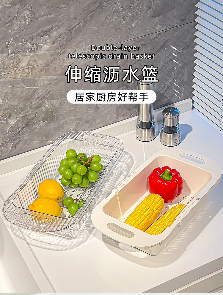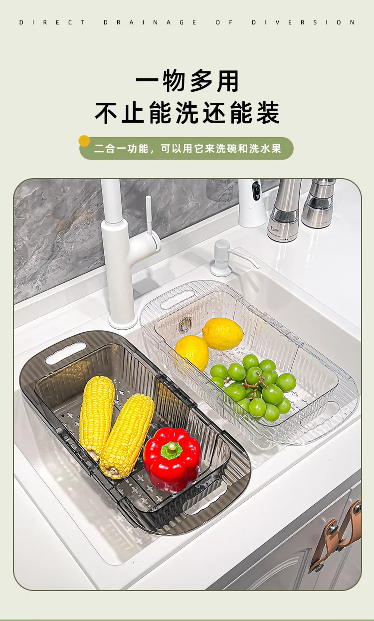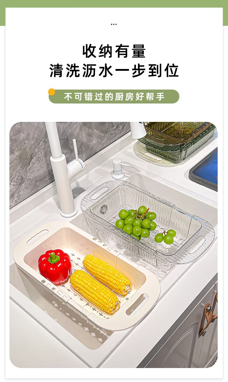 廚房伸縮瀝水架洗菜盆瀝水籃家用水槽濾水籃水池菜籃子洗菜池神器