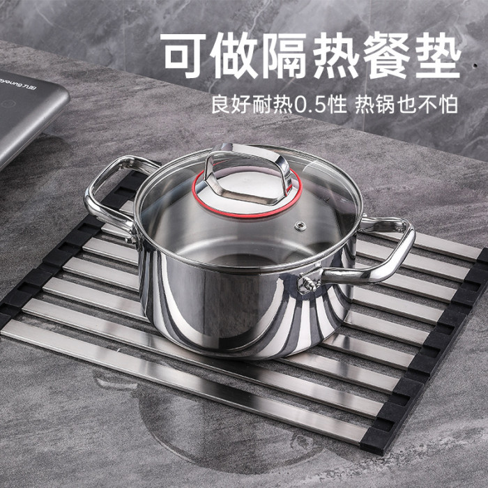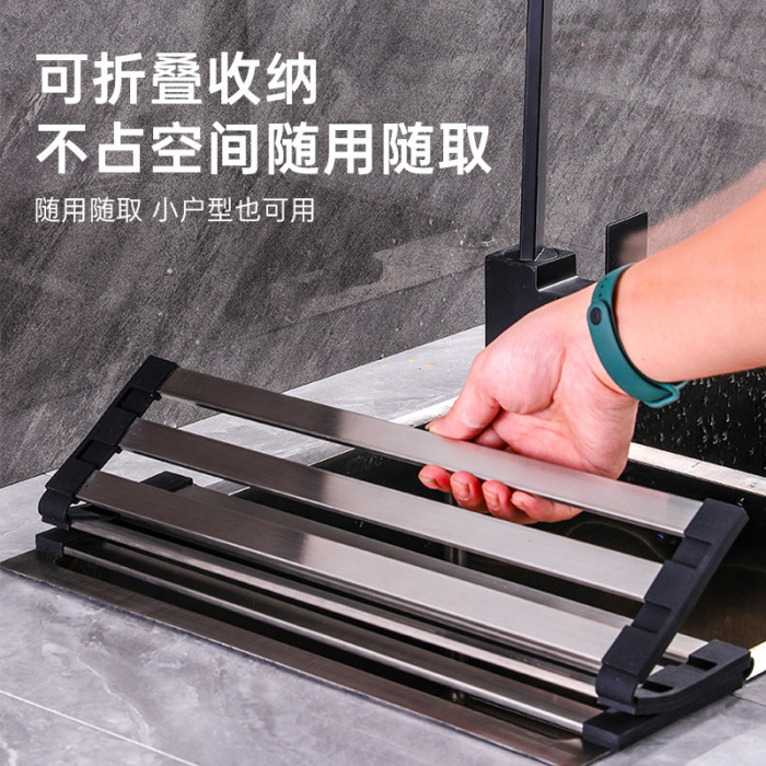 廚房水槽瀝水架304不鏽鋼可折曡洗菜盆濾水卷簾水池瀝水籃置物架