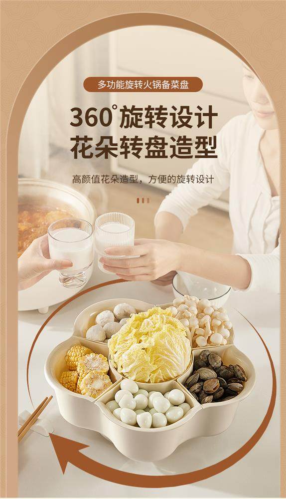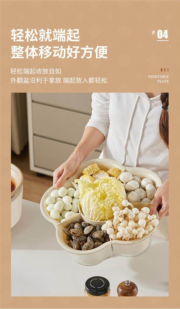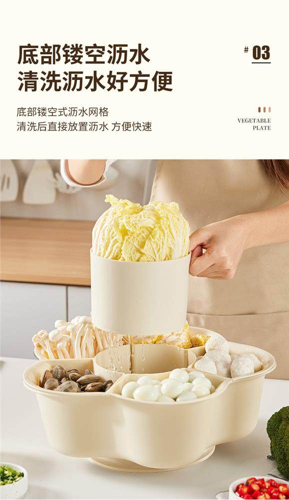 可旋轉火鍋配菜盤分格收納蔬菜拼盤多功能瀝水菜盤子廚房備菜神器