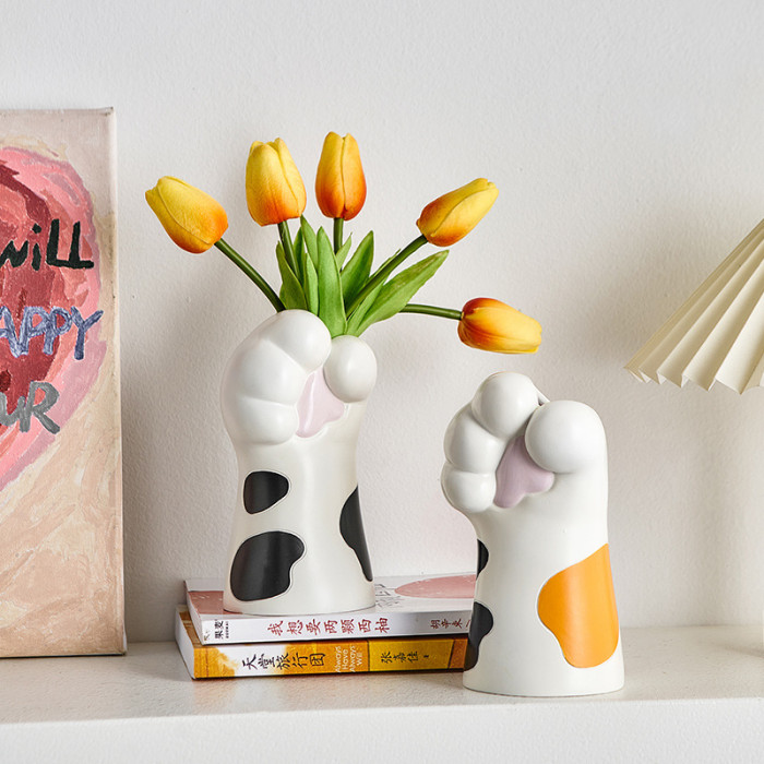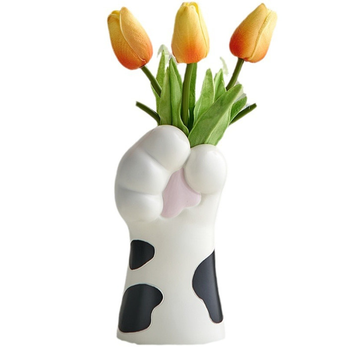 樹脂貓爪花插花瓶-嬭牛黑白爪