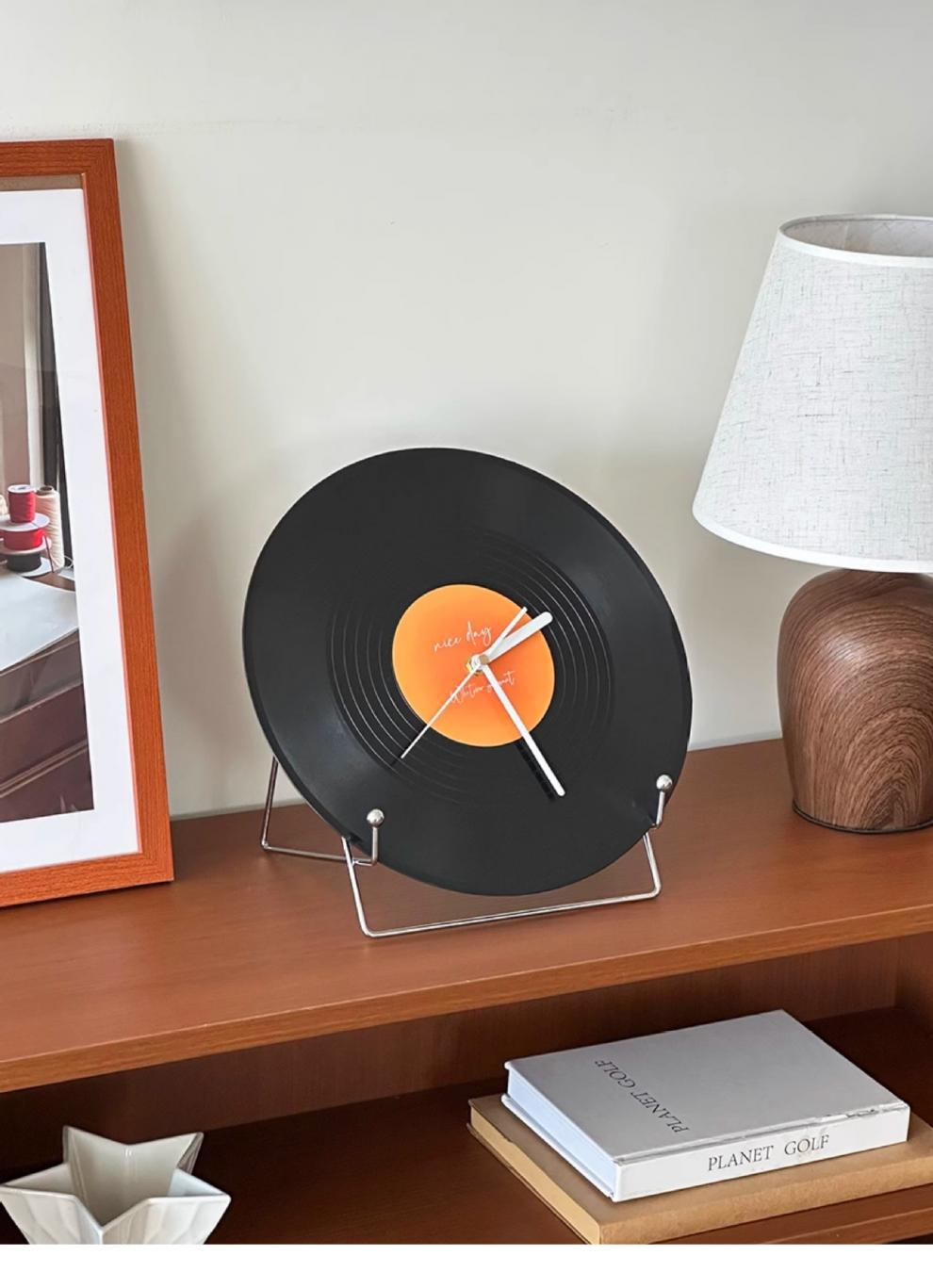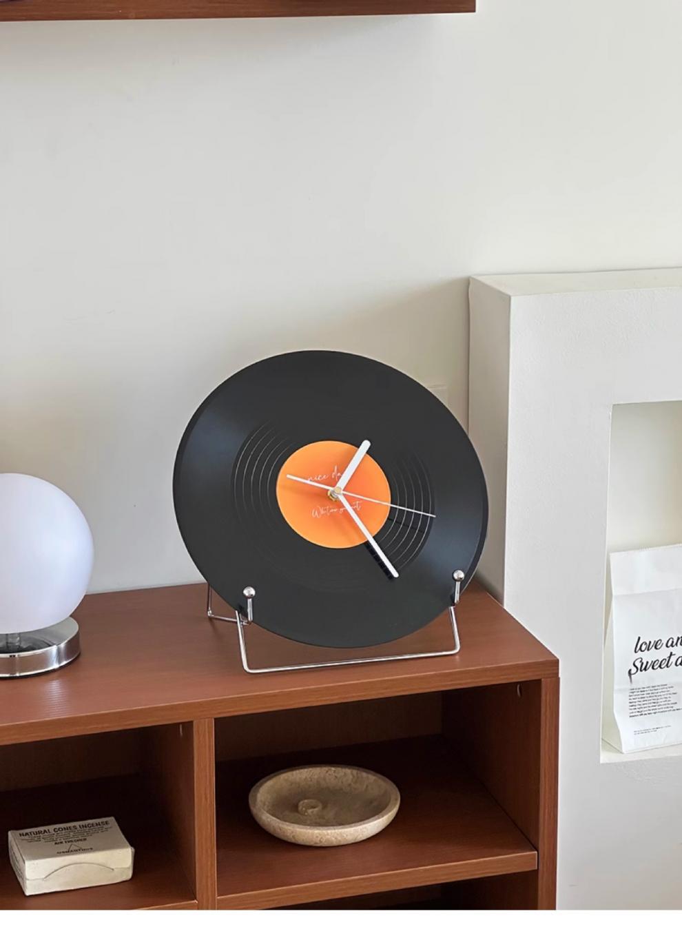 復古黑膠唱片鍾日落掛鍾客廳辦公室書桌桌面擺件酒櫃電視牆面裝飾