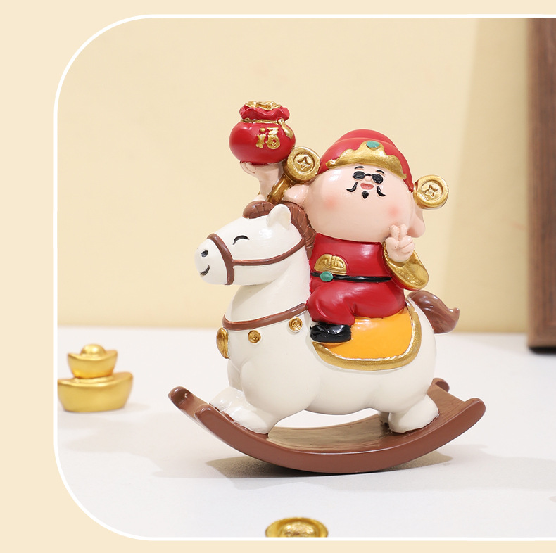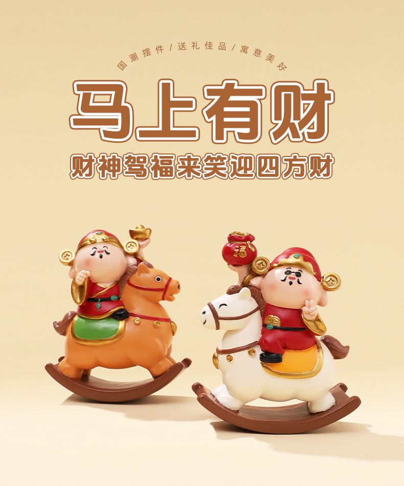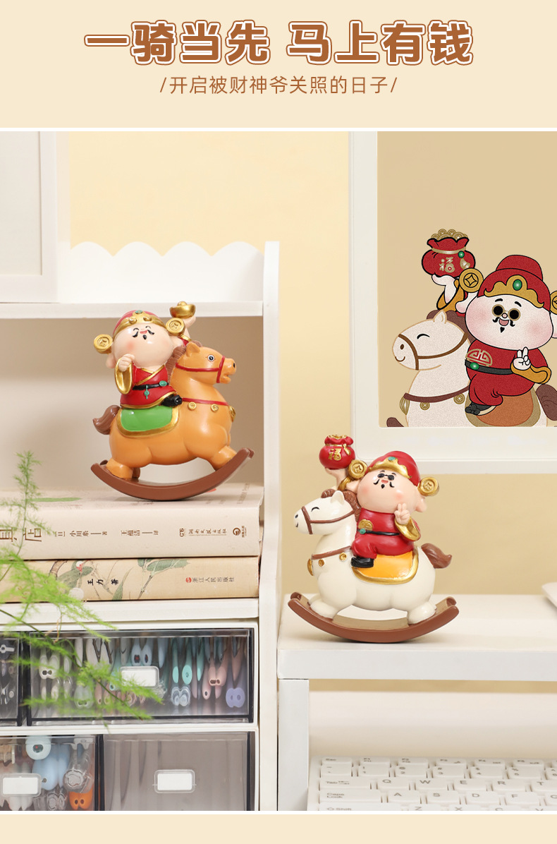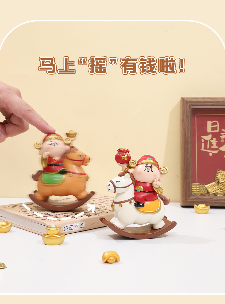 【馬上有錢】財神爺搖搖馬擺件玄關財神辦公室工位財運桌面裝飾品