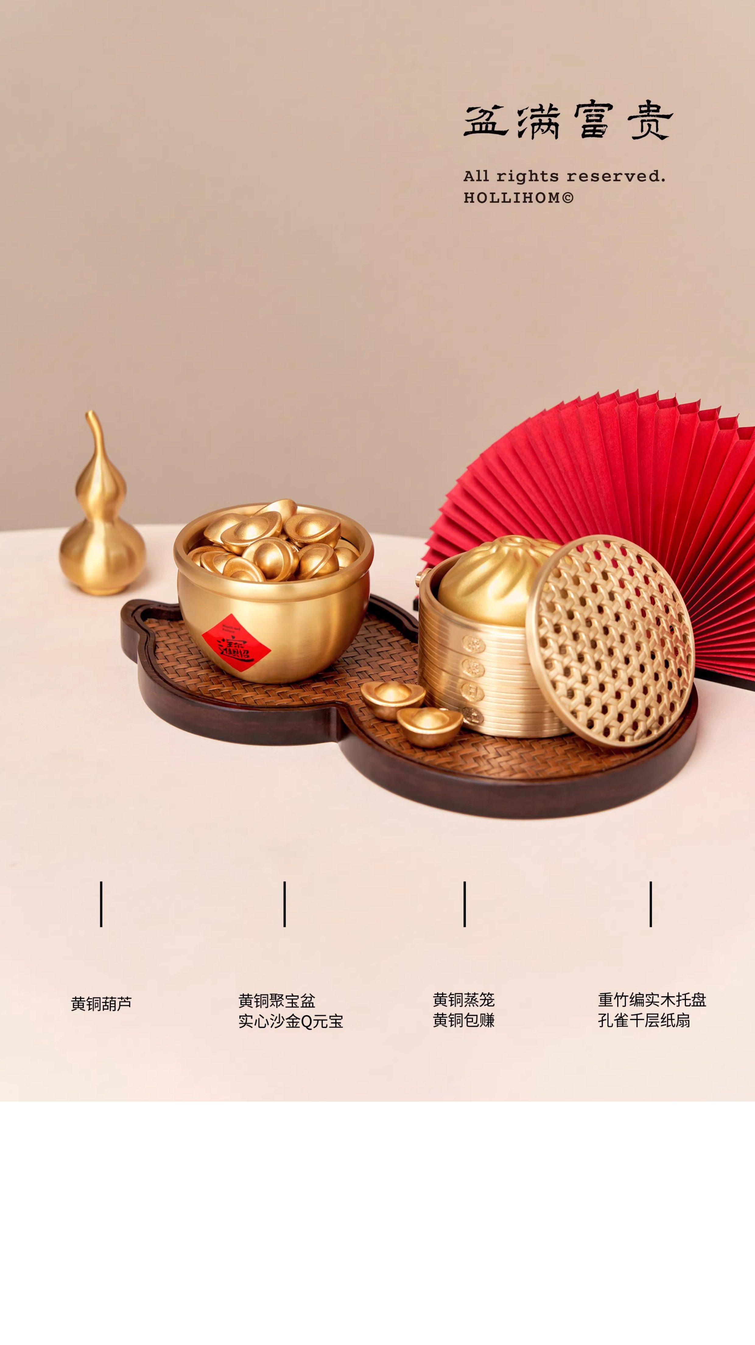 逅裡「盆滿富貴」黃銅聚寶盆 一桶金小擺件 招財新年裝飾高檔禮物