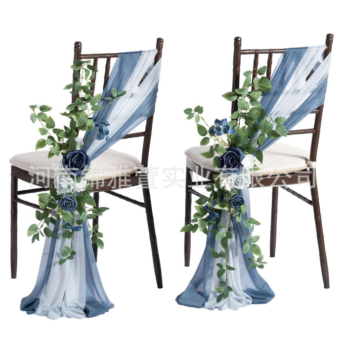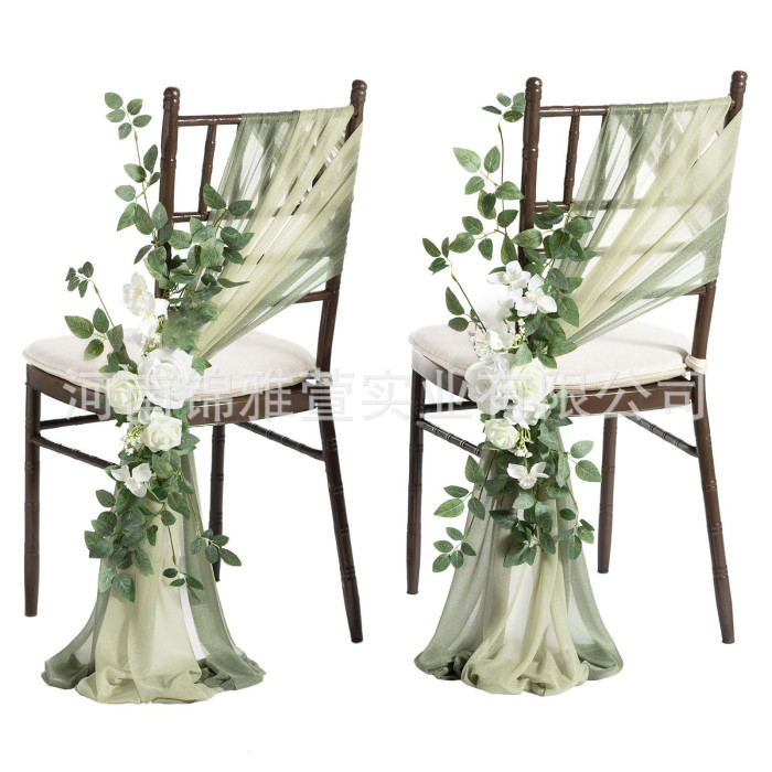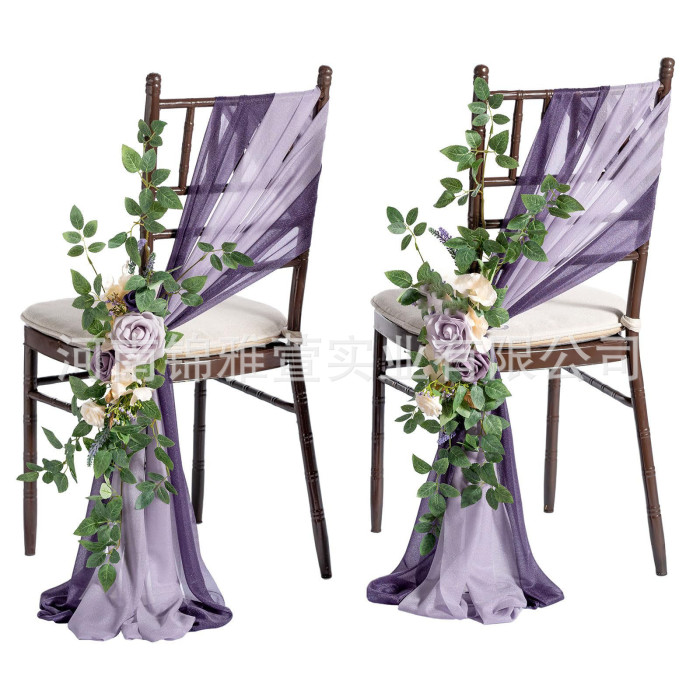 椅背仿真裝飾花婚禮戶外椅背紗裝飾雪紡帷幔供貨